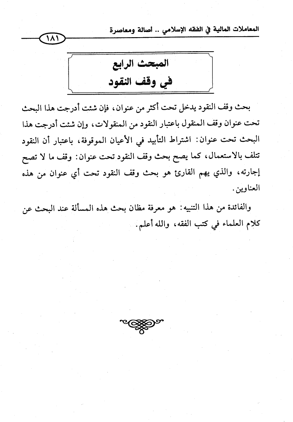 المبحث الرابع في وقف النقود