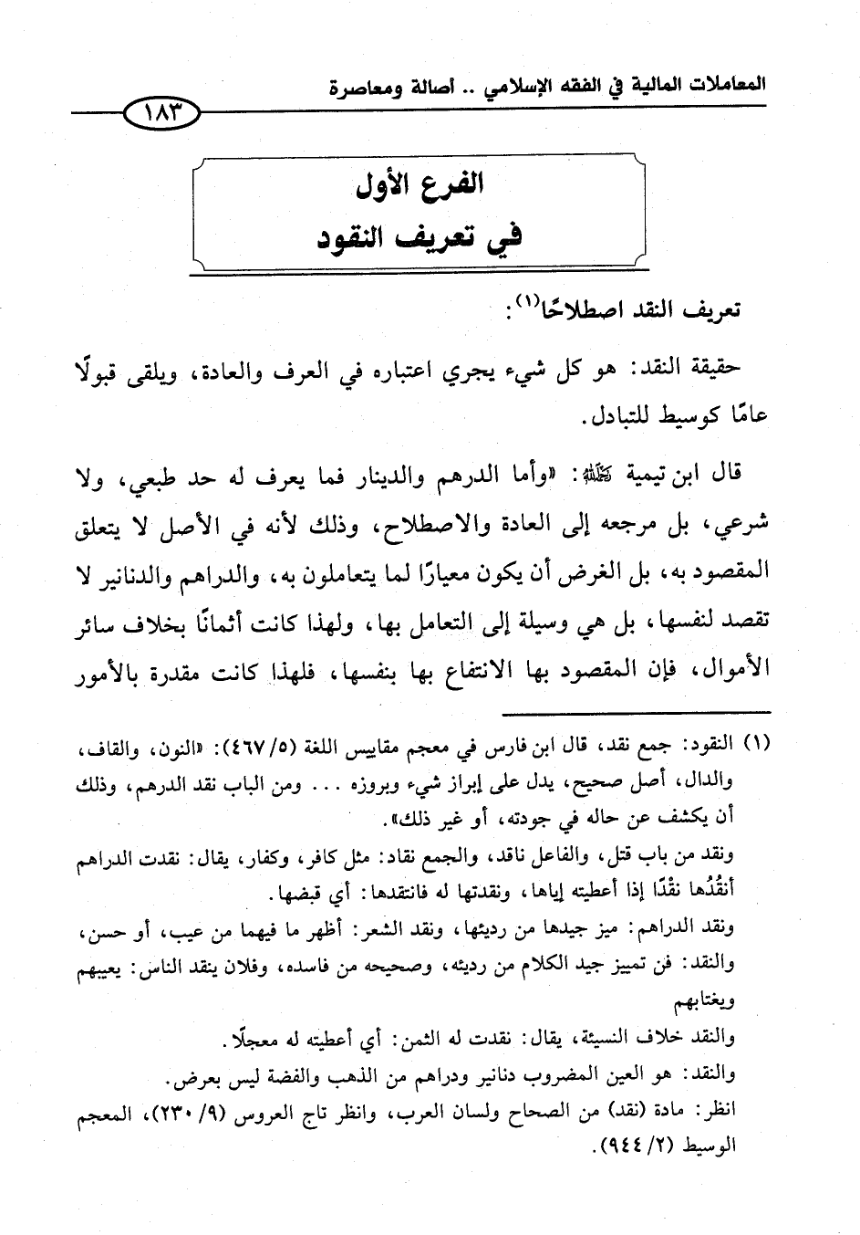 الفرع الأول في تعريف النقود