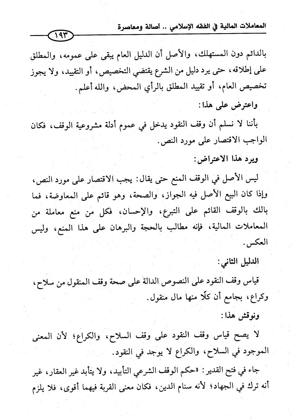 بأننا لا نسلم أن وقف النقود يدخل في عموم أدلة مشروعية الوقف، فكان الواجب الاقتصار على مورد النص.