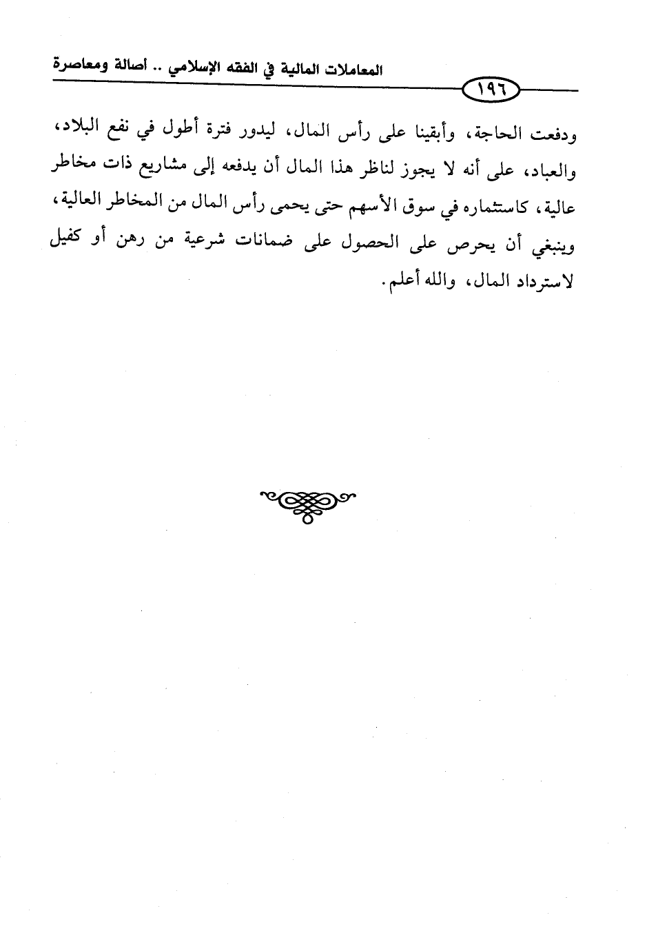 ودفعت الحاجة، وأبقينا على رأس المال، ليدور فترة أطول في نفع البلاد، والعباد، على أنه لا يجوز لناظر هذا المال أن يدفعه إلى مشاريع ذات مخاطر عالية، كاستثماره في سوق الأسهم حتى يحيى رأس المال من المخاطر العالية، وينبغي أن يحرص على الحصول على ضمانات شرعية من رهن أو كفيل لاسترداد المال، والله أعلم.