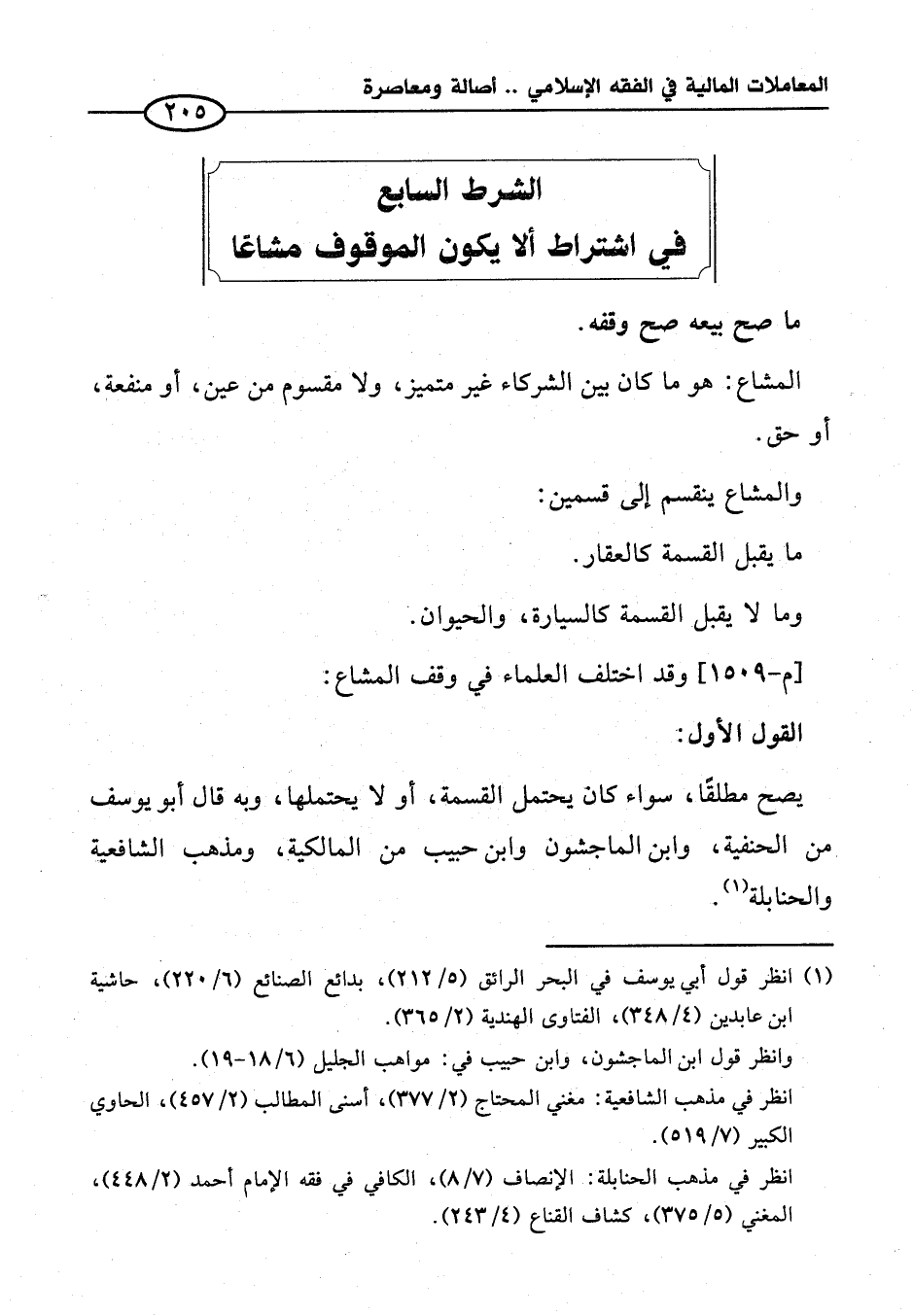 الشرط السابع في اشتراط ألا يكون الموقوف مشاعًا