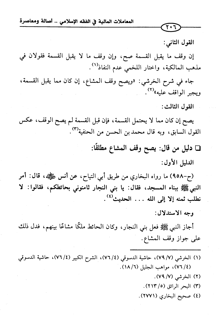 أجاز النبي - صلى الله عليه وسلم - فعل بني النجار، وكان الحائط ملكًا مشاعًا بينهم، فدل ذلك على جواز وقف المشاع.