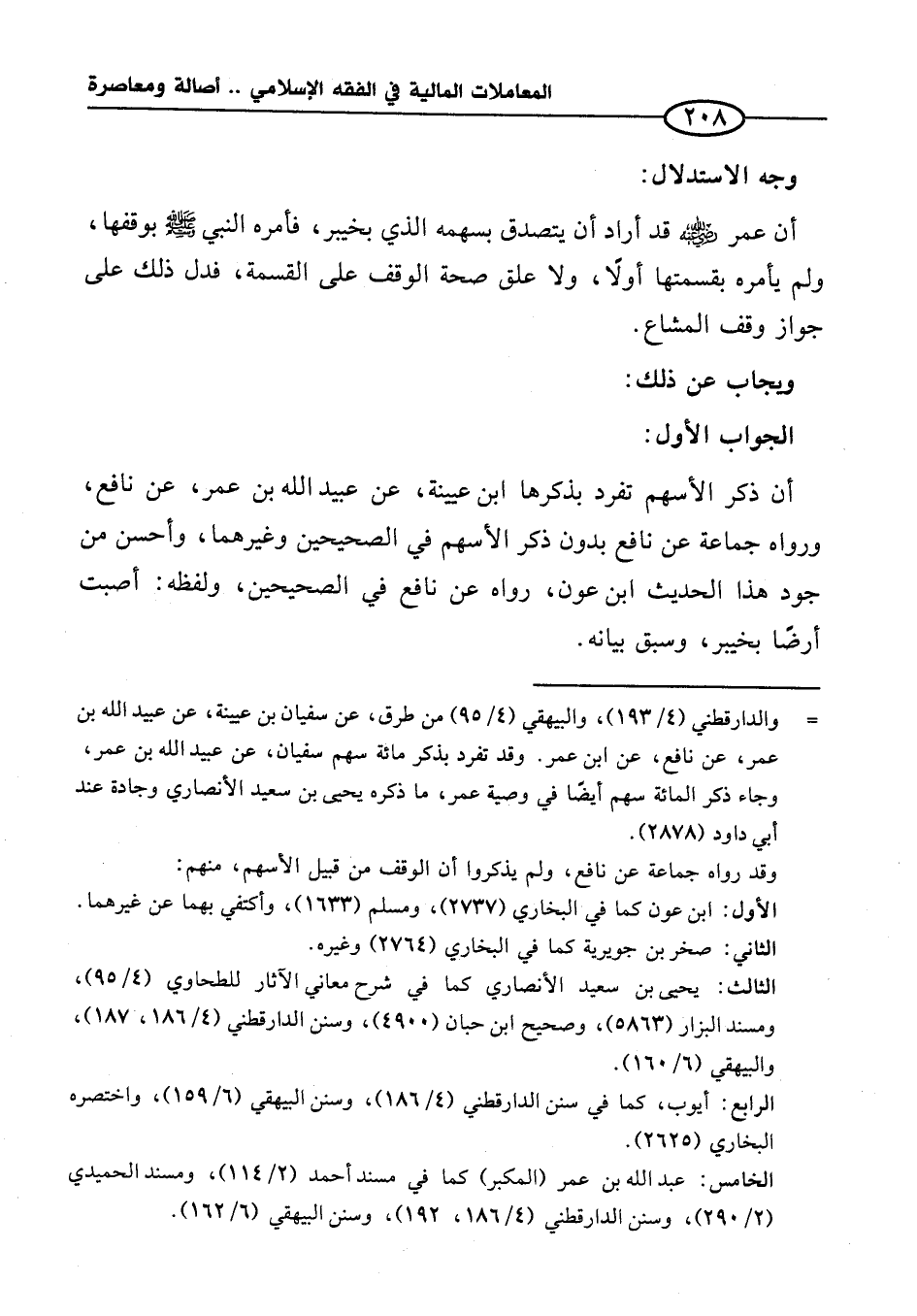 أن ذكر الأسهم تفرد بذكرها ابن عيينة، عن عبيد الله بن عمر، عن نافع، ورواه جماعة عن نافع بدون ذكر الأسهم في الصحيحين وغيرهما، وأحسن من جود هذا الحديث ابن عون، رواه عن نافع في الصحيحين، ولفظه: أصبت أرضًا بخيبر، وسبق بيانه.