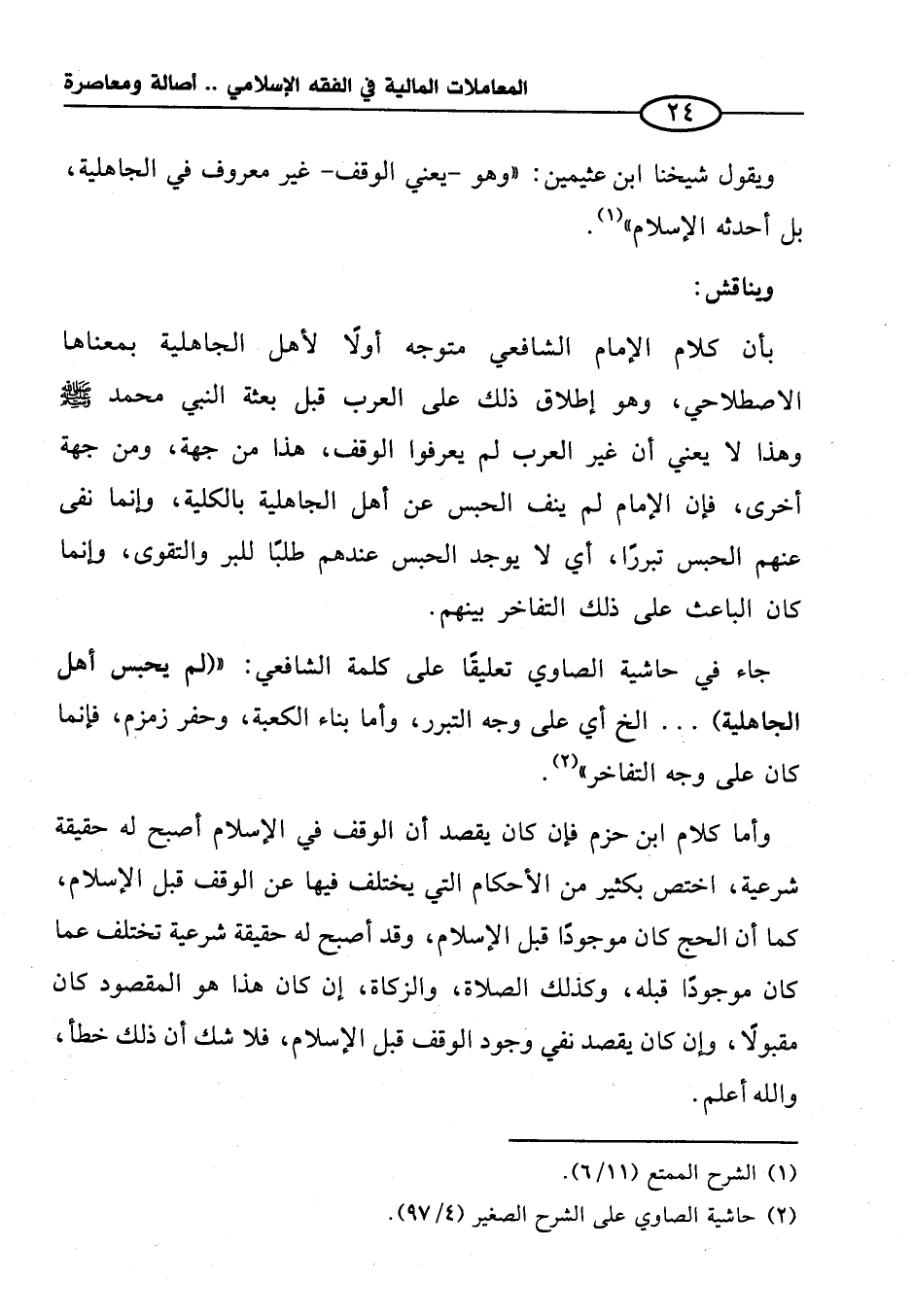 ويقول شيخنا ابن عثيمين: "وهو -يعني الوقف- غير معروف في الجاهلية، بل أحدثه الإسلام" (¬١).