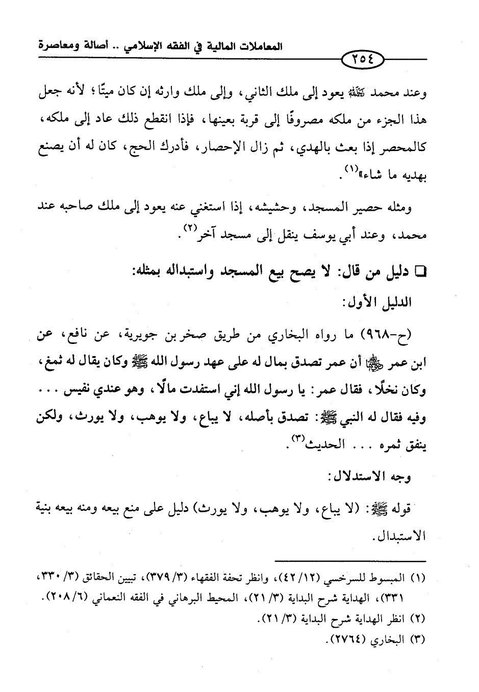 قوله - صلى الله عليه وسلم -: (لا يباع، ولا يوهب، ولا يورث) دليل على منع بيعه ومنه بيعه بنية الاستبدال.