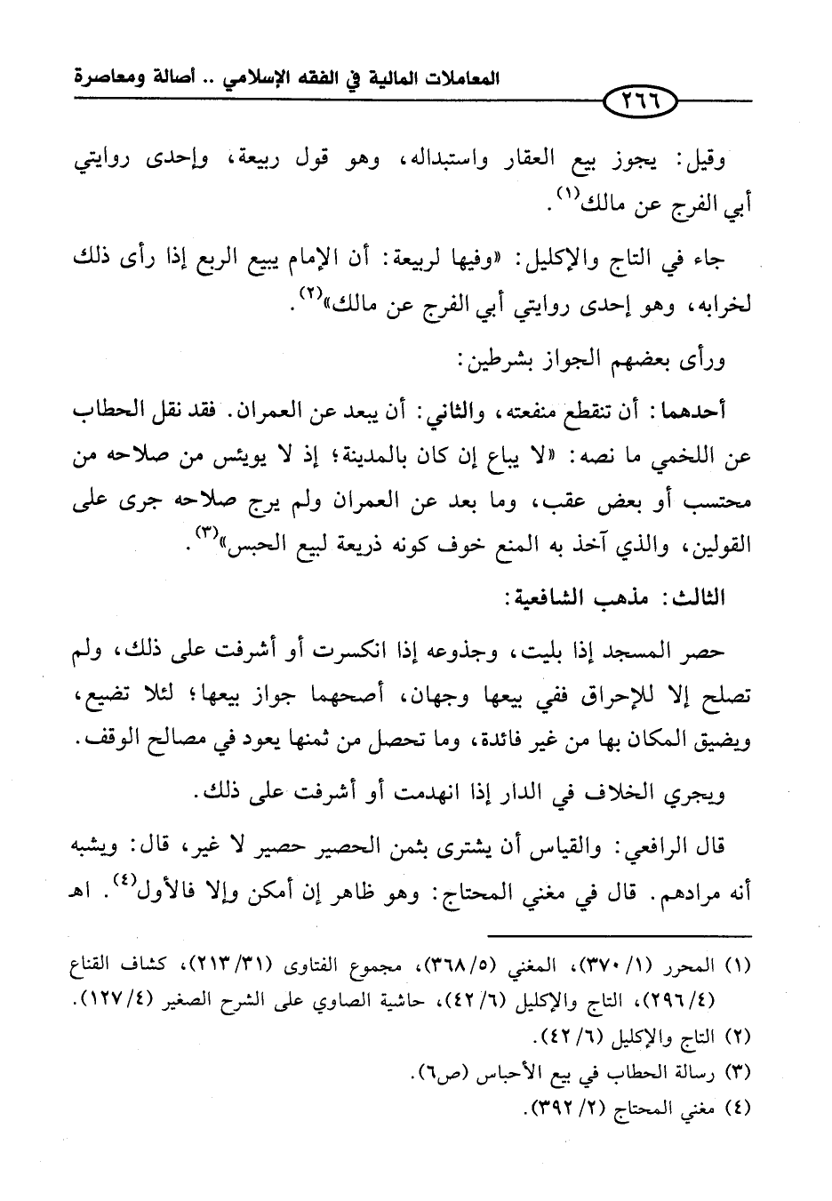 جاء في التاج والإكليل: "وفيها لربيعة: أن الإِمام يبيع الربع إذا رأى ذلك لخرابه، وهو إحدى روايتي أبي الفرج عن مالك" (¬٢).
