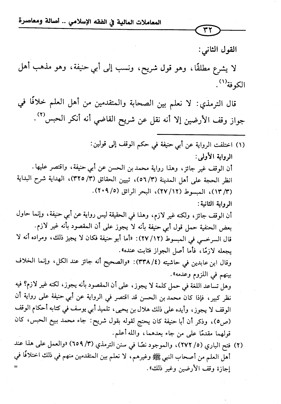 وهل تساعد اللغة في حمل كلمة لا يجوز، على أن المقصود بأنه يجوز، لكنه غير لازم؟ فيه نظر كبير، فإذا كان محمَّد بن الحسن قد اقتصر في الرواية عن أبي حنيفة على رواية أن الوقف لا يجوز، وأيده على ذلك هلال بن يحيى، تلميذ أبي يوسف في كتابه أحكام الوقف (ص ٥)، وذكر أن أبا حنيفة كان يحتج لقوله بقول شريح: جاء محمَّد ببيع الحبس، كان قولهما مقدمًا على من جاء بعدهما، والله أعلم.