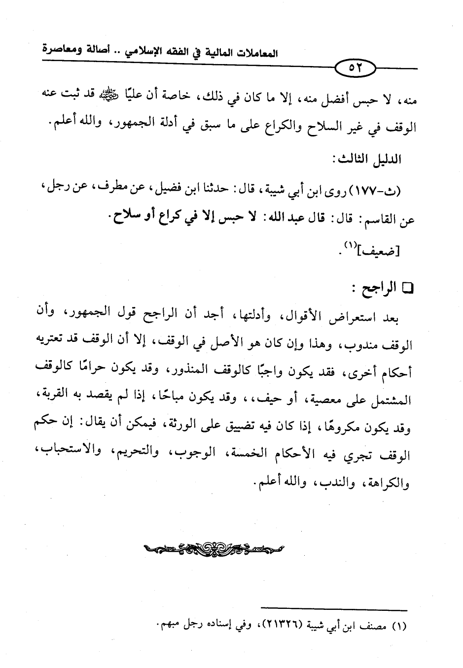 (ث -١٧٧) روى ابن أبي شيبة، قال: حدثنا ابن فضيل، عن مطرف، عن رجل، عن القاسم: قال: قال عبد الله: لا حبس إلا في كراع أو سلاح.