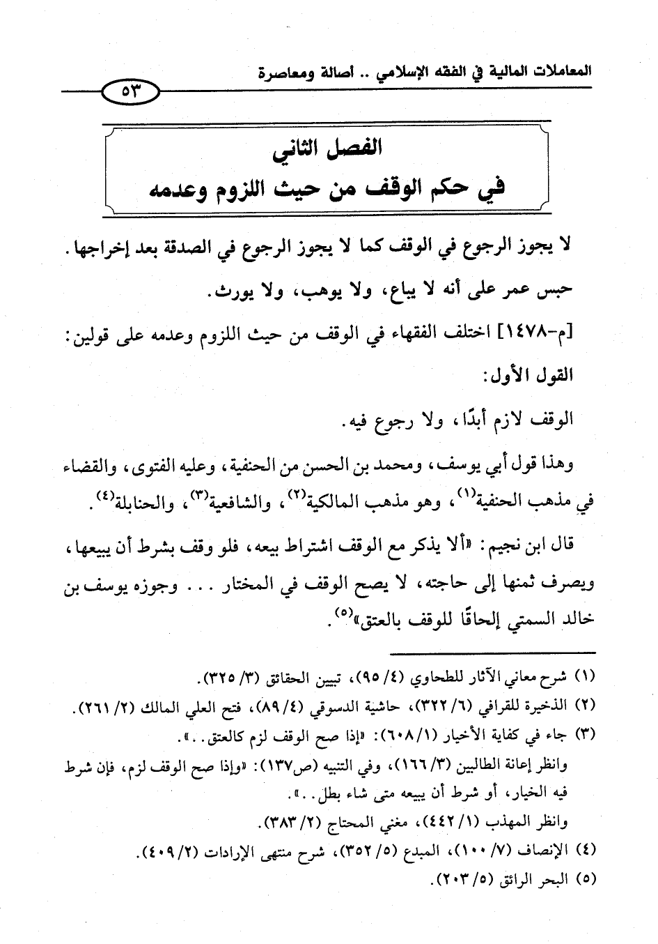 الفصل الثاني في حكم الوقف من حيث اللزوم وعدمه