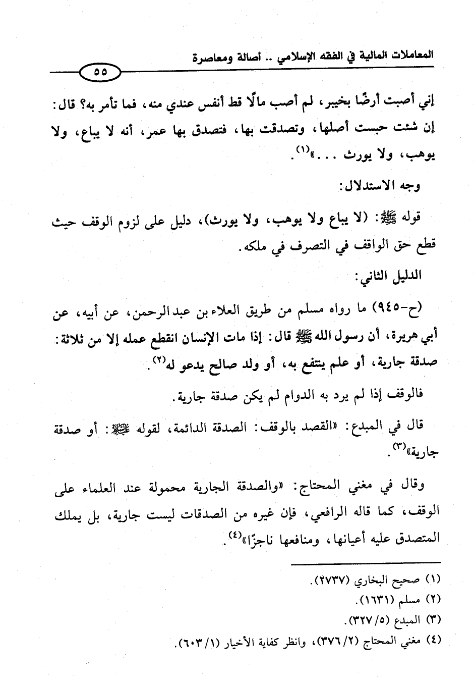 إني أصبت أرضًا بخيبر، لم أصب مالًا قط أنفس عندي منه، فما تأمر به؟ قال: إن شئت حبست أصلها، وتصدقت بها، فتصدق بها عمر، أنه لا يباع، ولا يوهب، ولا يورث ... " (¬١).