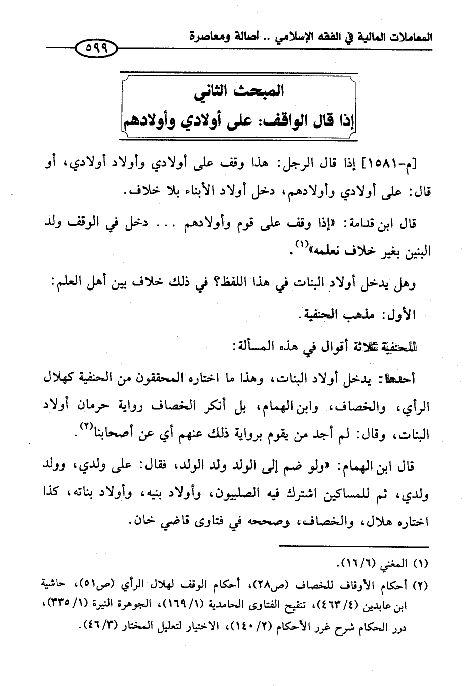 المبحث الثاني إذا قال الواقف: على أولادي وأولادهم