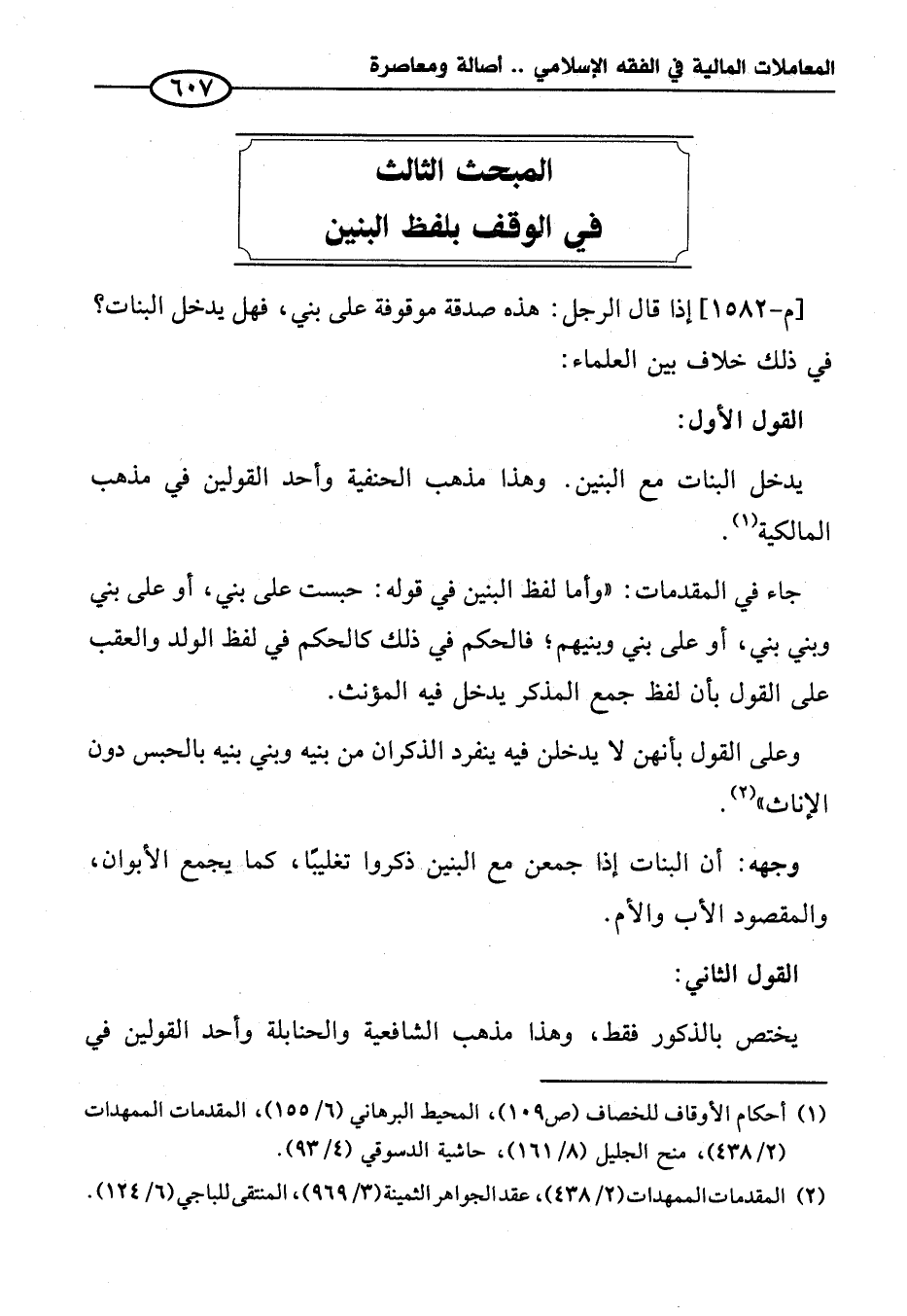 (¬١) أحكام الأوقاف للخصاف (ص ١٠٩)، المحيط البرهاني (٦/ ١٥٥)، المقدمات الممهدات (٢/ ٤٣٨)، منح الجليل (٨/ ١٦١)، حاشية الدسوقي (٤/ ٩٣).