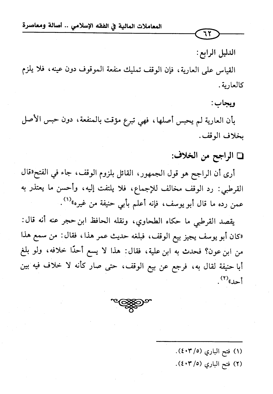 أرى أن الراجح هو قول الجمهور، القائل بلزوم الوقف، جاء في الفتح "قال القرطبي: رد الوقف مخالف للإجماع، فلا يلتفت إليه، وأحسن ما يعتذر به عمن رده ما قال أبو يوسف، فإنه أعلم بأبي حنيفة من غيره" (¬١).