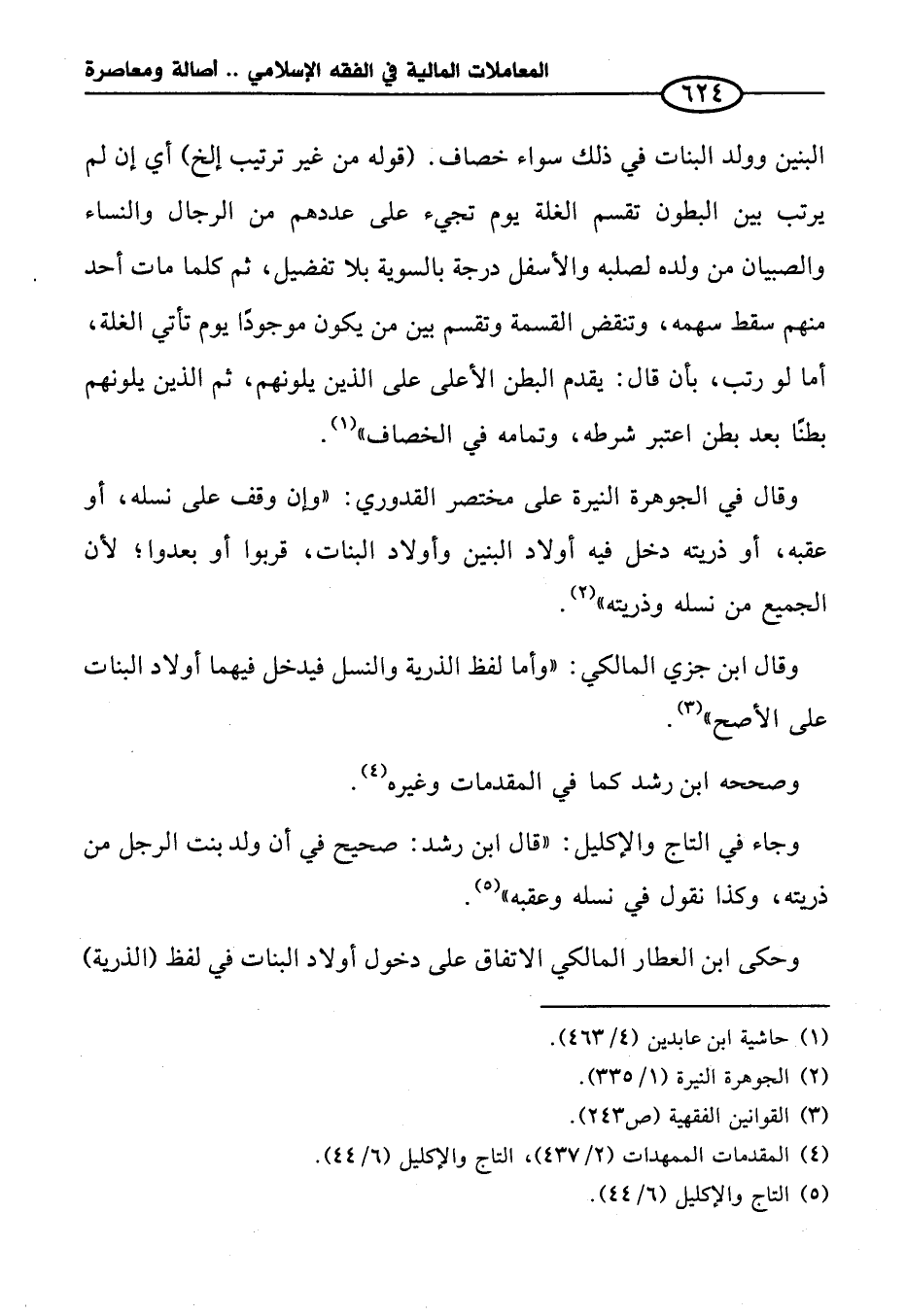 وجاء في التاج والإكليل: "قال ابن رشد: صحيح في أن ولد بنت الرجل من ذريته، وكذا نقول في نسله وعقبه" (¬٥).