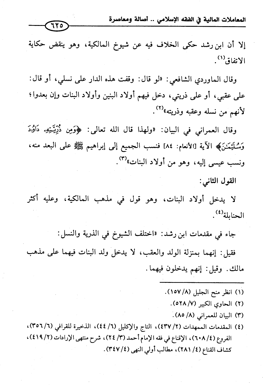 جاء في مقدمات ابن رشد: "اختلف الشيوخ في الذرية والنسل: