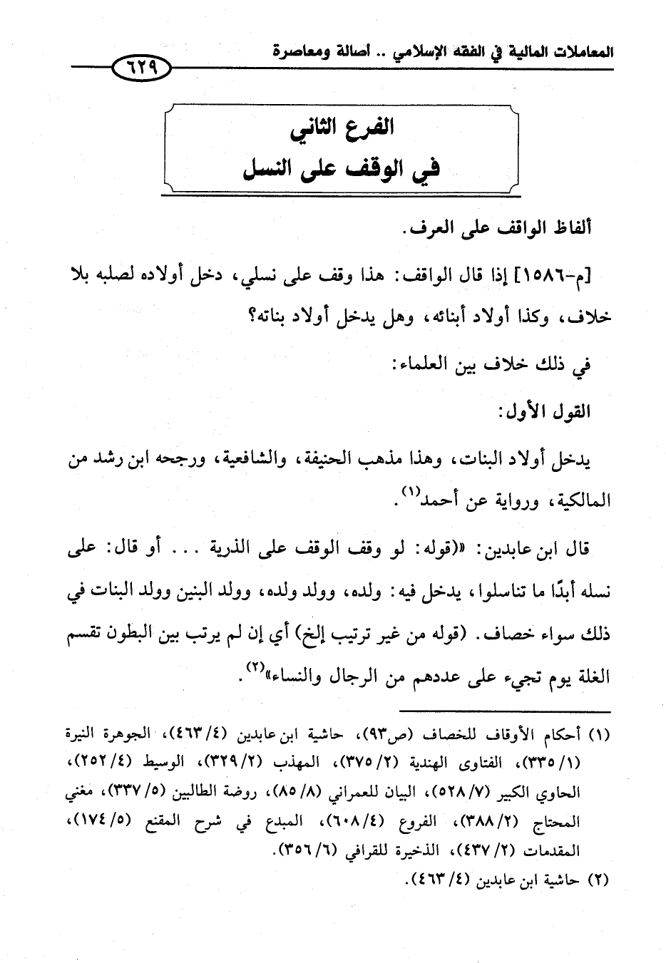 (¬١) أحكام الأوقاف للخصاف (ص ٩٣)، حاشية ابن عابدين (٤/ ٤٦٣)، الجوهرة النيرة (١/ ٣٣٥)، الفتاوى الهندية (٢/ ٣٧٥)، المهذب (٢/ ٣٢٩)، الوسيط (٤/ ٢٥٢)، الحاوي الكبير (٧/ ٥٢٨)، البيان للعمراني (٨/ ٨٥)، روضة الطالبين (٥/ ٣٣٧)، مغني المحتاج (٢/ ٣٨٨)، الفروع (٤/ ٦٠٨)، المبدع في شرح المقنع (٥/ ١٧٤)، المقدمات (٢/ ٤٣٧)، الذخيرة للقرافي (٦/ ٣٥٦).