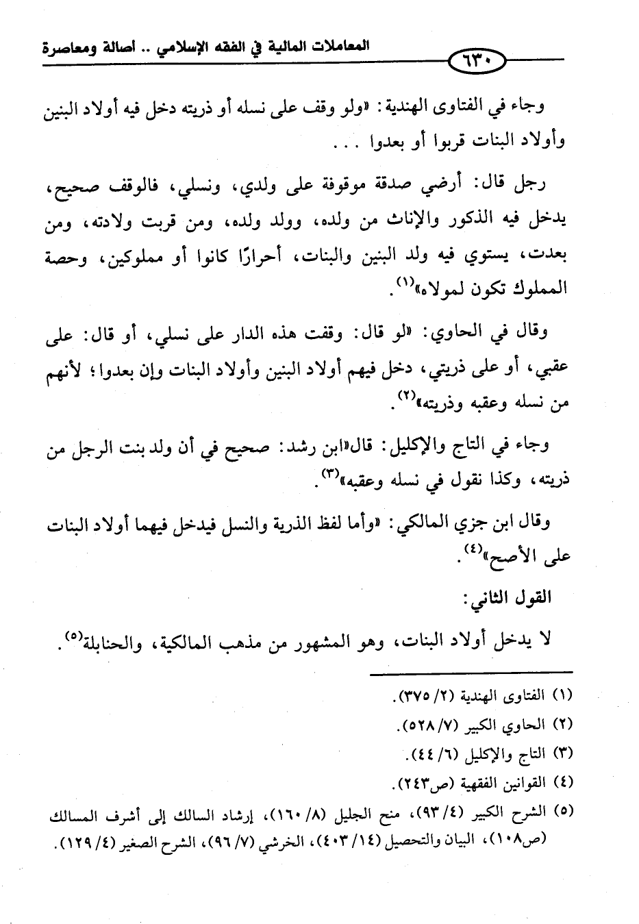 وجاء في الفتاوى الهندية: "ولو وقف على نسله أو ذريته دخل فيه أولاد البنين وأولاد البنات قربوا أو بعدوا ...