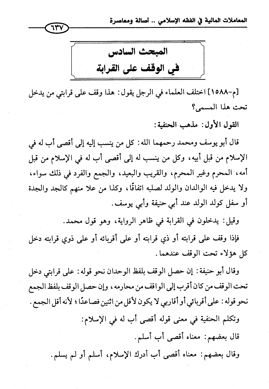 [م - ١٥٨٨] اختلف العلماء في الرجل يقول: هذا وقف على قرابتي من يدخل تحت هذا المسمى؟