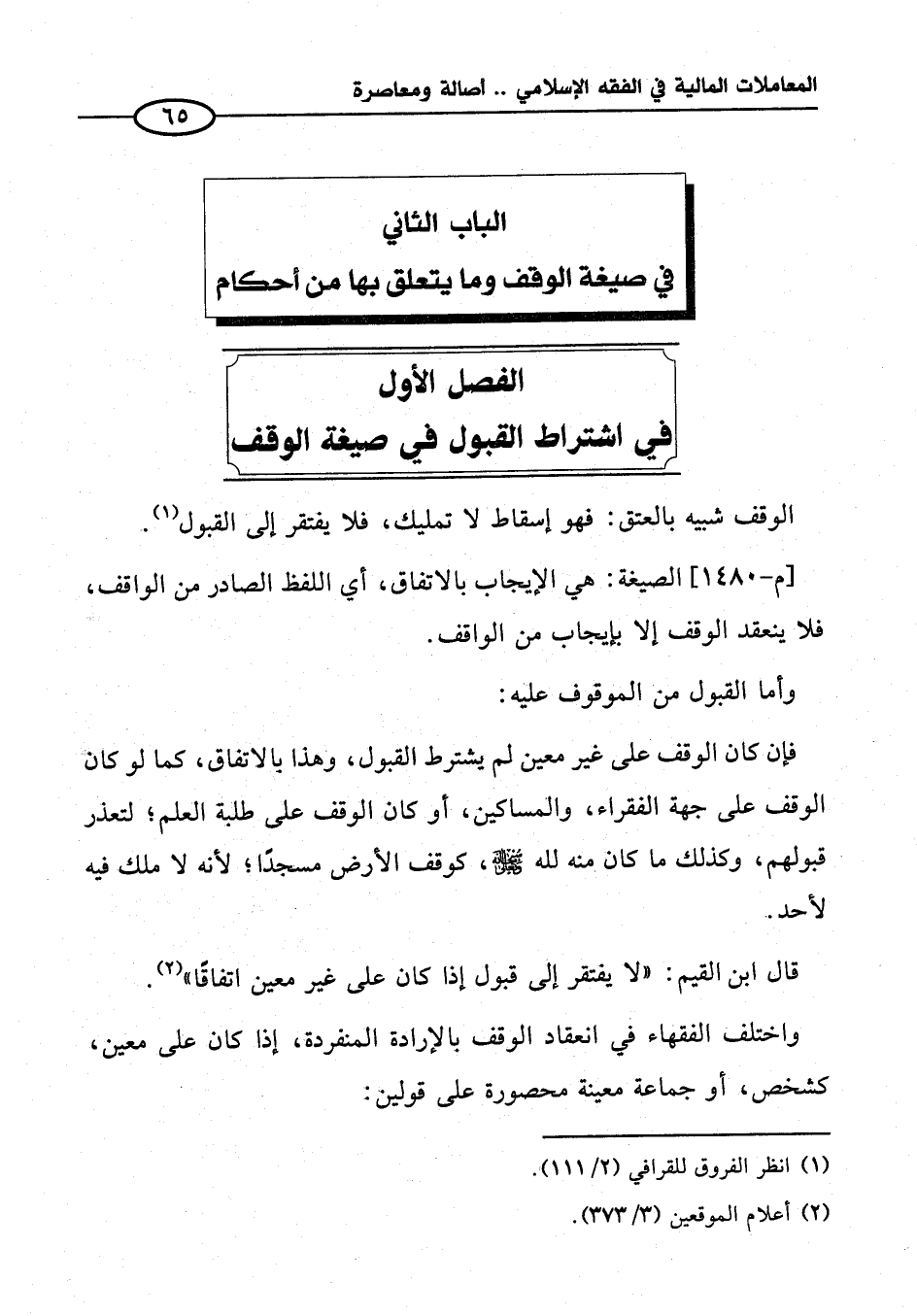 الفصل الأول في اشتراط القبول في صيغة الوقف