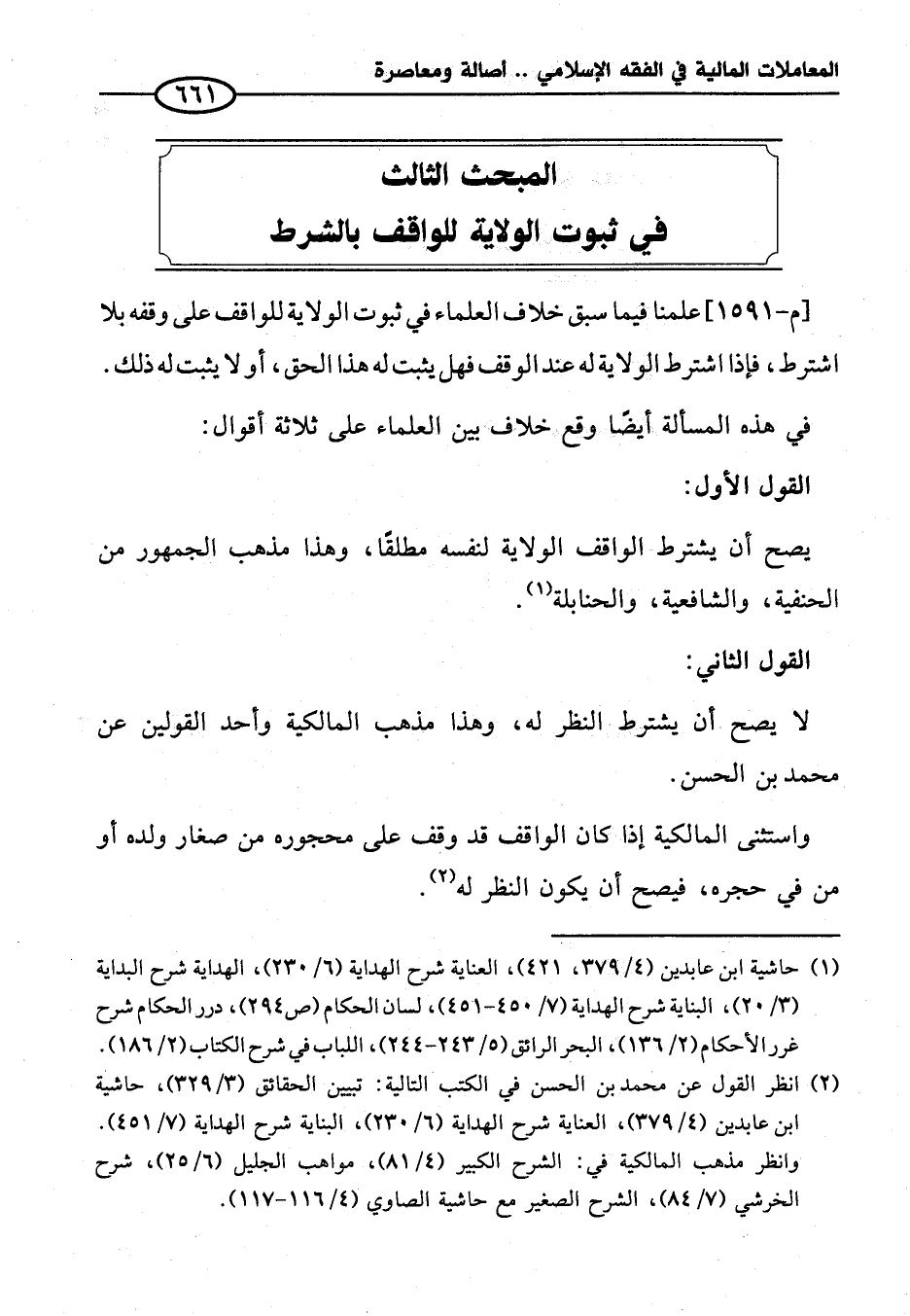 المبحث الثالث في ثبوت الولاية للواقف بالشرط