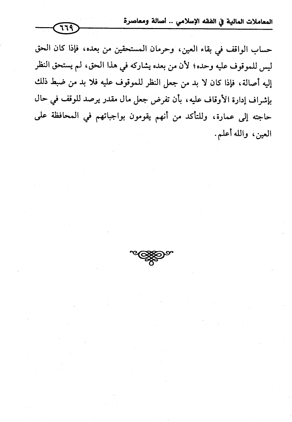 حساب الواقف في بقاء العين، وحرمان المستحقين من بعده، فإذا كان الحق ليس للموقوف عليه وحده؛ لأن من بعده يشاركه في هذا الحق، لم يستحق النظر إليه أصالة، فإذا كان لا بد من جعل النظر للموقوف عليه فلا بد من ضبط ذلك بإشراف إدارة الأوقاف عليه، بأن تفرض جعل مال مقدر يرصد للوقف في حال حاجته إلى عمارة، وللتأكد من أنهم يقومون بواجباتهم في المحافظة على العين، والله أعلم.
