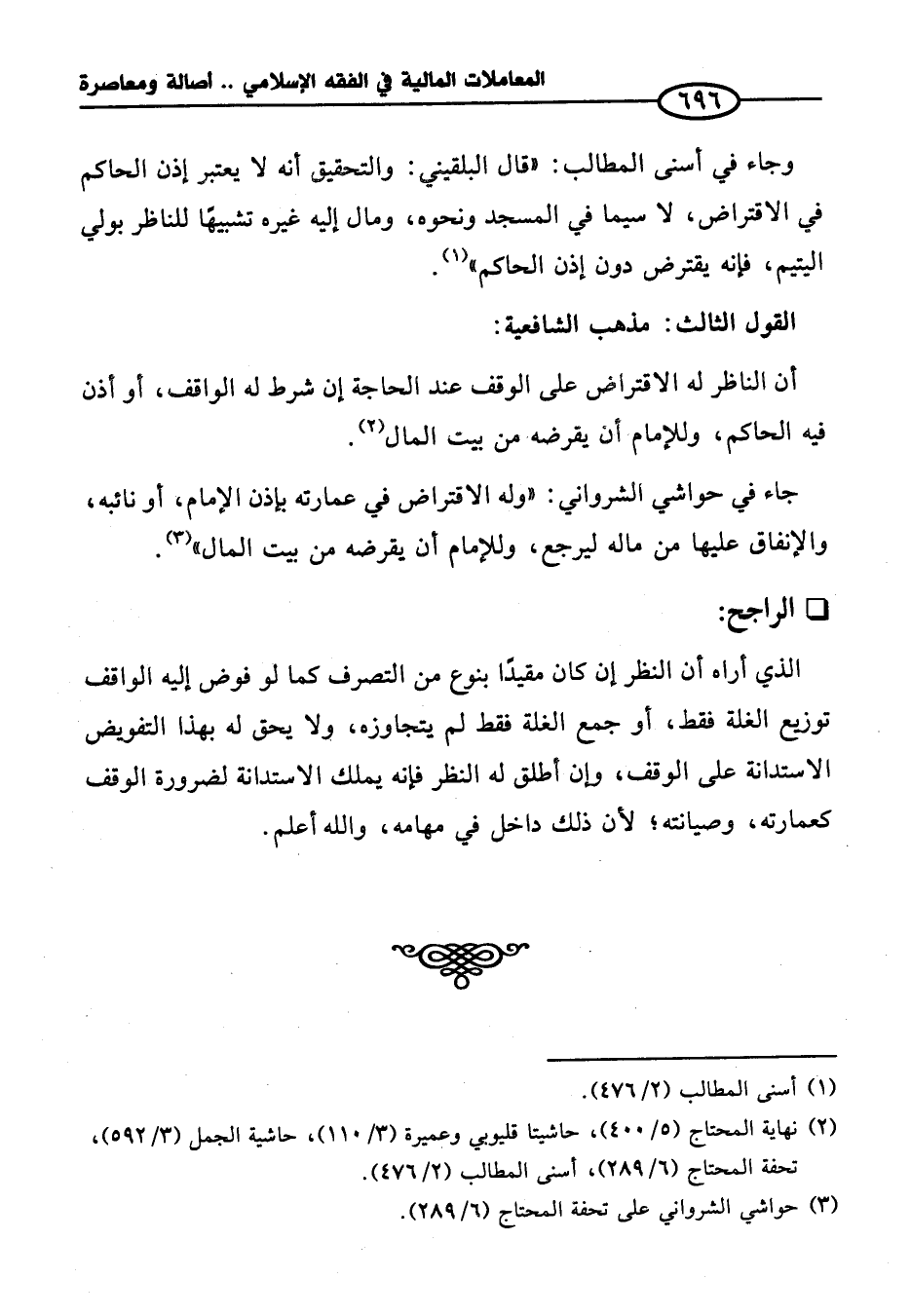 (¬٢) نهاية المحتاج (٥/ ٤٠٠)، حاشيتا قليوبي وعميرة (٣/ ١١٠)، حاشية الجمل (٣/ ٥٩٢)، تحفة المحتاج (٦/ ٢٨٩)، أسنى المطالب (٢/ ٤٧٦).