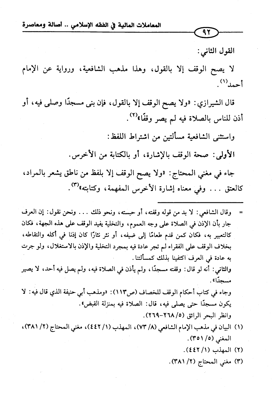 قال الشيرازي: "ولا يصح الوقف إلا بالقول، فإن بني مسجدًا وصلى فيه، أو أذن للناس بالصلاة فيه لم يصر وقفًا" (¬٢).