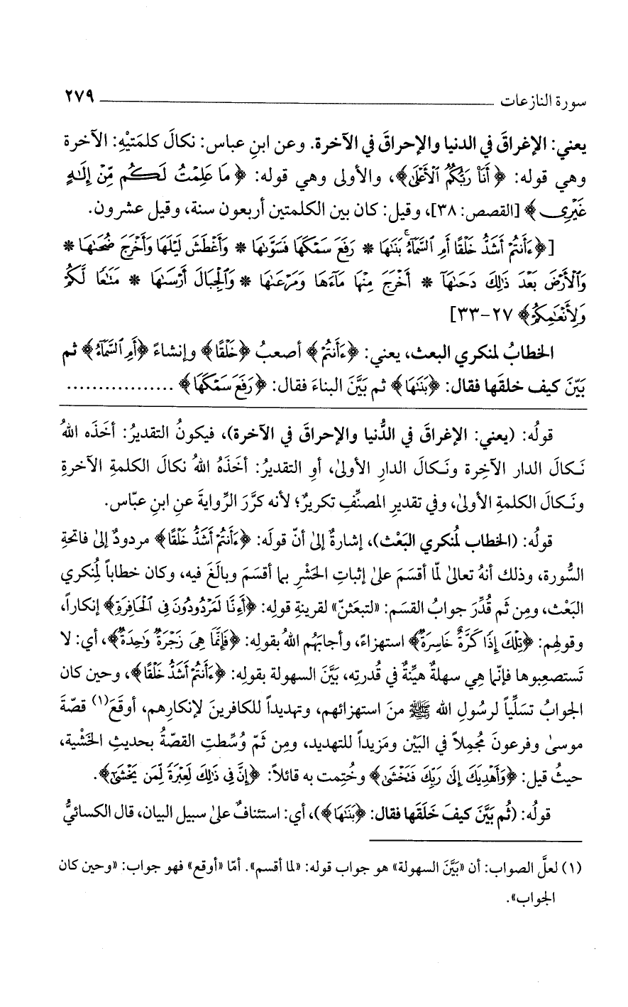 [(أَنتُمْ أَشَدُّ خَلْقًا أَمِ السَّمَاءُ بَنَاهَا • رَفَعَ سَمْكَهَا فَسَوَّاهَا • وأَغْطَشَ لَيْلَهَا وأَخْرَجَ ضُحَاهَا • والأَرْضَ بَعْدَ ذَلِكَ دَحَاهَا • أَخْرَجَ مِنْهَا مَاءَهَا ومَرْعَاهَا • والْجِبَالَ أَرْسَاهَا • مَتَاعًا لَّكُمْ ولأَنْعَامِكُمْ) 27 - 33]