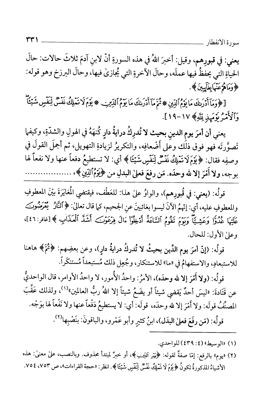 [(وَما أَدْراكَ ما يَوْمُ الدِّينِ * ثُمَّ ما أَدْراكَ ما يَوْمُ الدِّينِ * يَوْمَ لا تَمْلِكُ نَفْسٌ لِنَفْسٍ شَيْئاً وَالْأَمْرُ يَوْمَئِذٍ لِلَّهِ) 17 - 19].