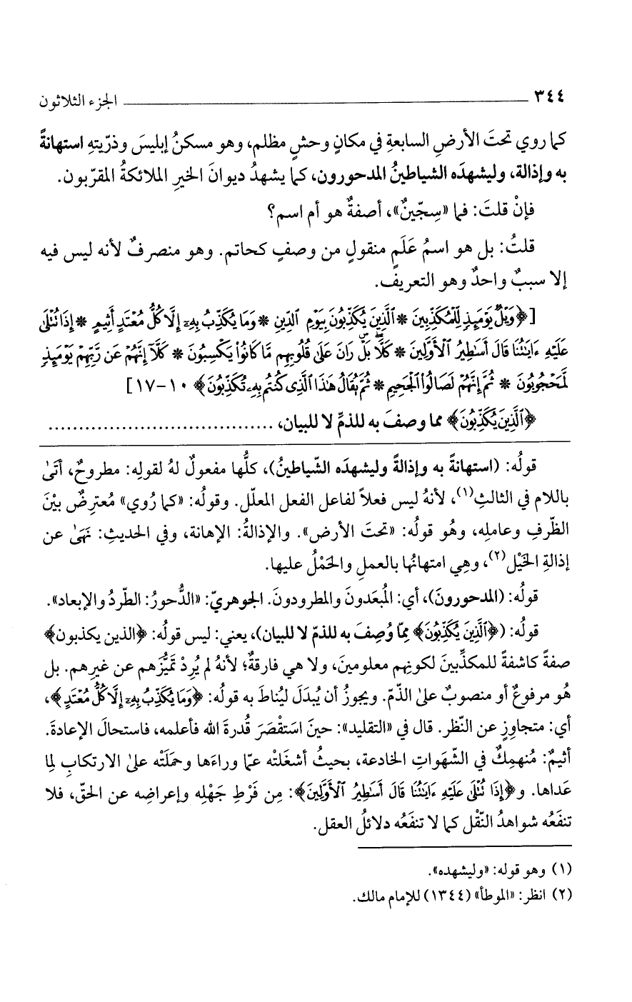 [(وَيْلٌ يَوْمَئِذٍ لِلْمُكَذِّبِينَ * الَّذِينَ يُكَذِّبُونَ بِيَوْمِ الدِّينِ * وَما يُكَذِّبُ بِهِ إِلاَّ كُلُّ مُعْتَدٍ أَثِيمٍ * إِذا تُتْلى عَلَيْهِ آياتُنا قالَ أَساطِيرُ الْأَوَّلِينَ * كَلاَّ بَلْ رانَ عَلى قُلُوبِهِمْ ما كانُوا يَكْسِبُونَ * كَلاَّ إِنَّهُمْ عَنْ رَبِّهِمْ يَوْمَئِذٍ لَمَحْجُوبُونَ * ثُمَّ إِنَّهُمْ لَصالُوا الْجَحِيمِ * ثُمَّ يُقالُ هذَا الَّذِي كُنْتُمْ بِهِ تُكَذِّبُونَ) 10 - 17].
