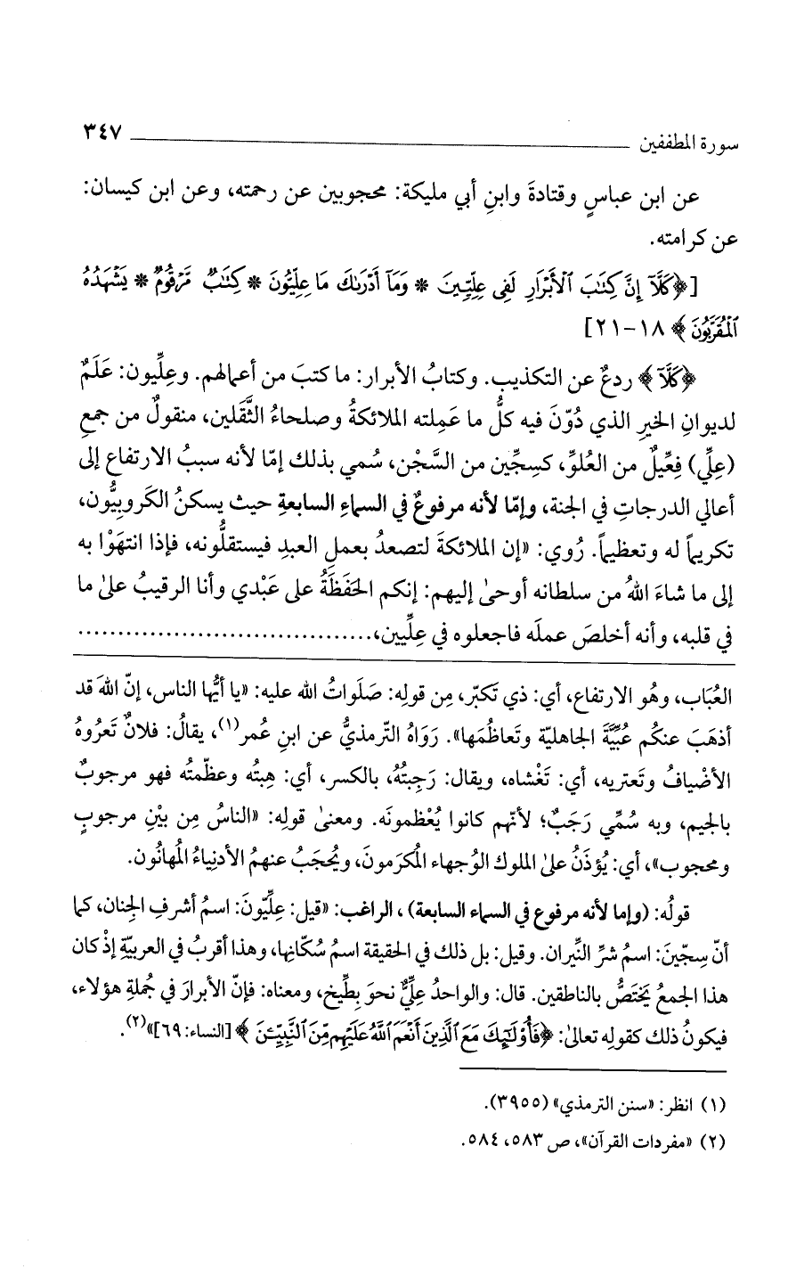 [(كَلاَّ إِنَّ كِتابَ الْأَبْرارِ لَفِي عِلِّيِّينَ * وَما أَدْراكَ ما عِلِّيُّونَ * كِتابٌ مَرْقُومٌ * يَشْهَدُهُ الْمُقَرَّبُونَ) 18 - 21].