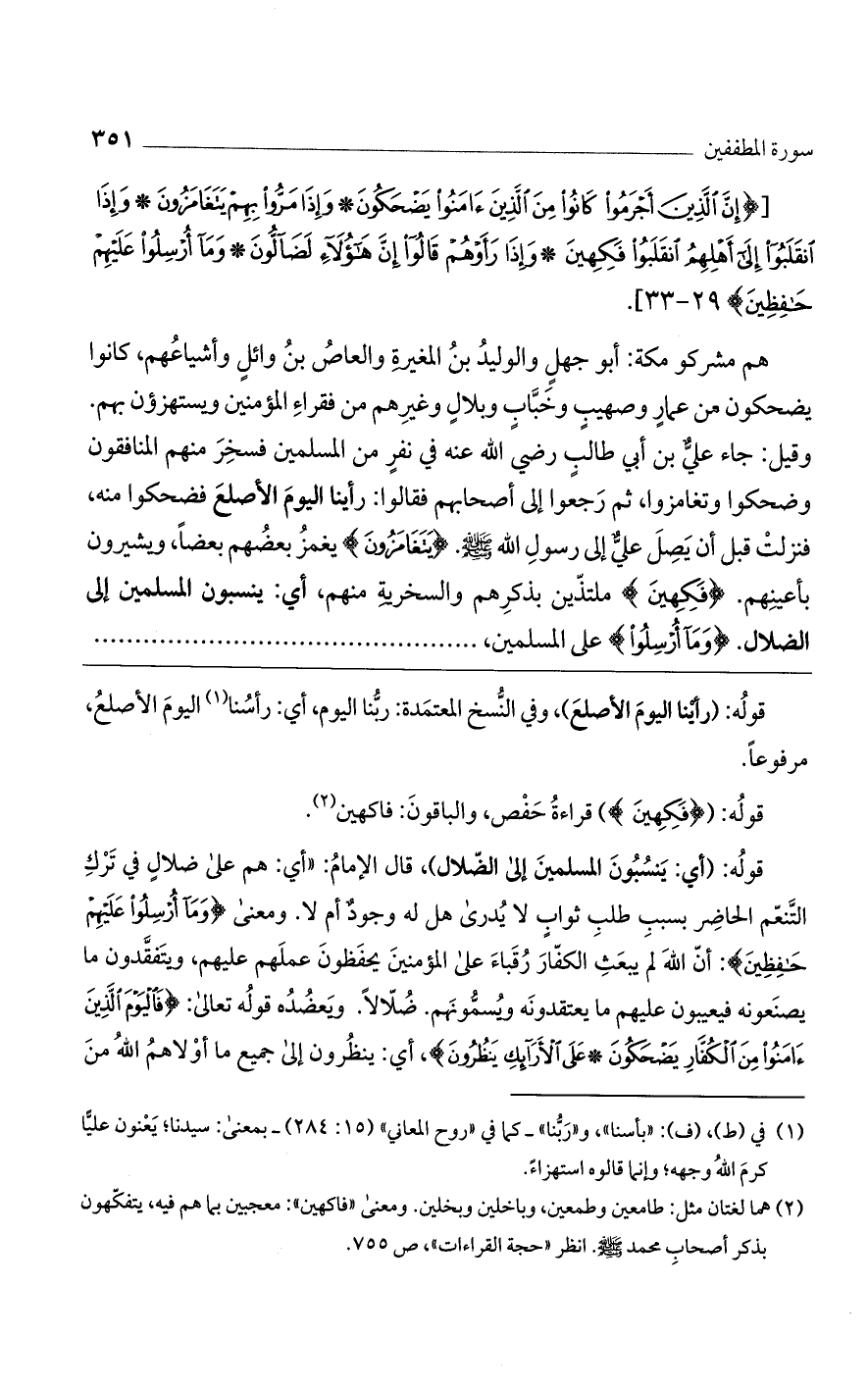 [(إِنَّ الَّذِينَ أَجْرَمُوا كانُوا مِنَ الَّذِينَ آمَنُوا يَضْحَكُونَ (29) وَإِذا مَرُّوا بِهِمْ يَتَغامَزُونَ (30) وَإِذَا انْقَلَبُوا إِلى أَهْلِهِمُ انْقَلَبُوا فَكِهِينَ (31) وَإِذا رَأَوْهُمْ قالُوا إِنَّ هؤُلاءِ لَضالُّونَ (32) وَما أُرْسِلُوا عَلَيْهِمْ حافِظِينَ) 29 - 33]
