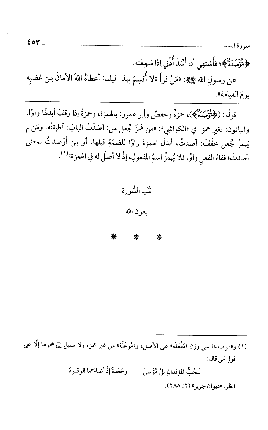 عن رسول الله صلى الله عليه وسلم: «من قرأ لا أقسم بهذا البلد" أعطاه الله الأمان من غضبه يوم القيامة».