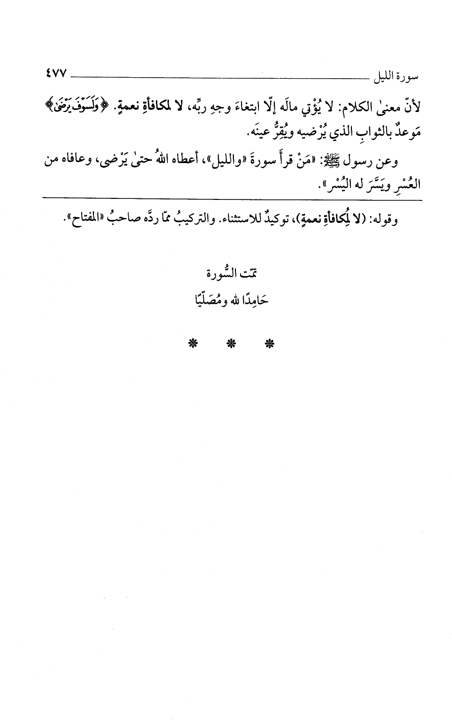 وعن رسول الله صلى الله عليه وسلم: «من قرأ سورة "والليل"، أعطاه الله حتى يرضى، وعافاه من العسر ويسر له اليسر».