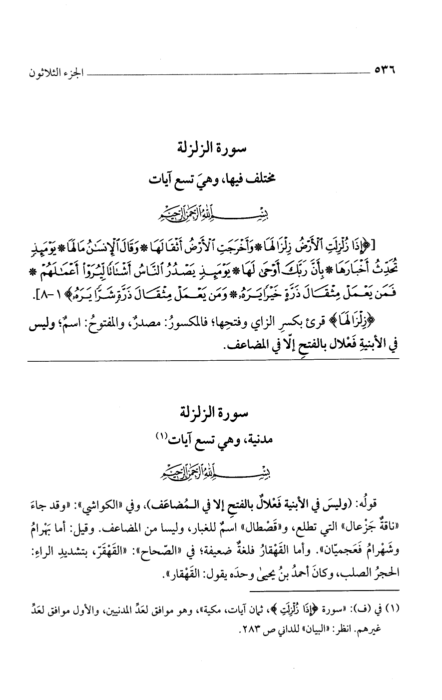 [(إِذا زُلْزِلَتِ الْأَرْضُ زِلْزالَها (1) وَأَخْرَجَتِ الْأَرْضُ أَثْقالَها (2) وَقالَ الْإِنْسانُ ما لَها (3) يَوْمَئِذٍ تُحَدِّثُ أَخْبارَها (4) بِأَنَّ رَبَّكَ أَوْحى لَها (5) يَوْمَئِذٍ يَصْدُرُ النَّاسُ أَشْتاتاً لِيُرَوْا أَعْمالَهُمْ (6) فَمَنْ يَعْمَلْ مِثْقالَ ذَرَّةٍ خَيْراً يَرَهُ (7) وَمَنْ يَعْمَلْ مِثْقالَ ذَرَّةٍ شَرًّا يَرَهُ)] 1 - 8 [.