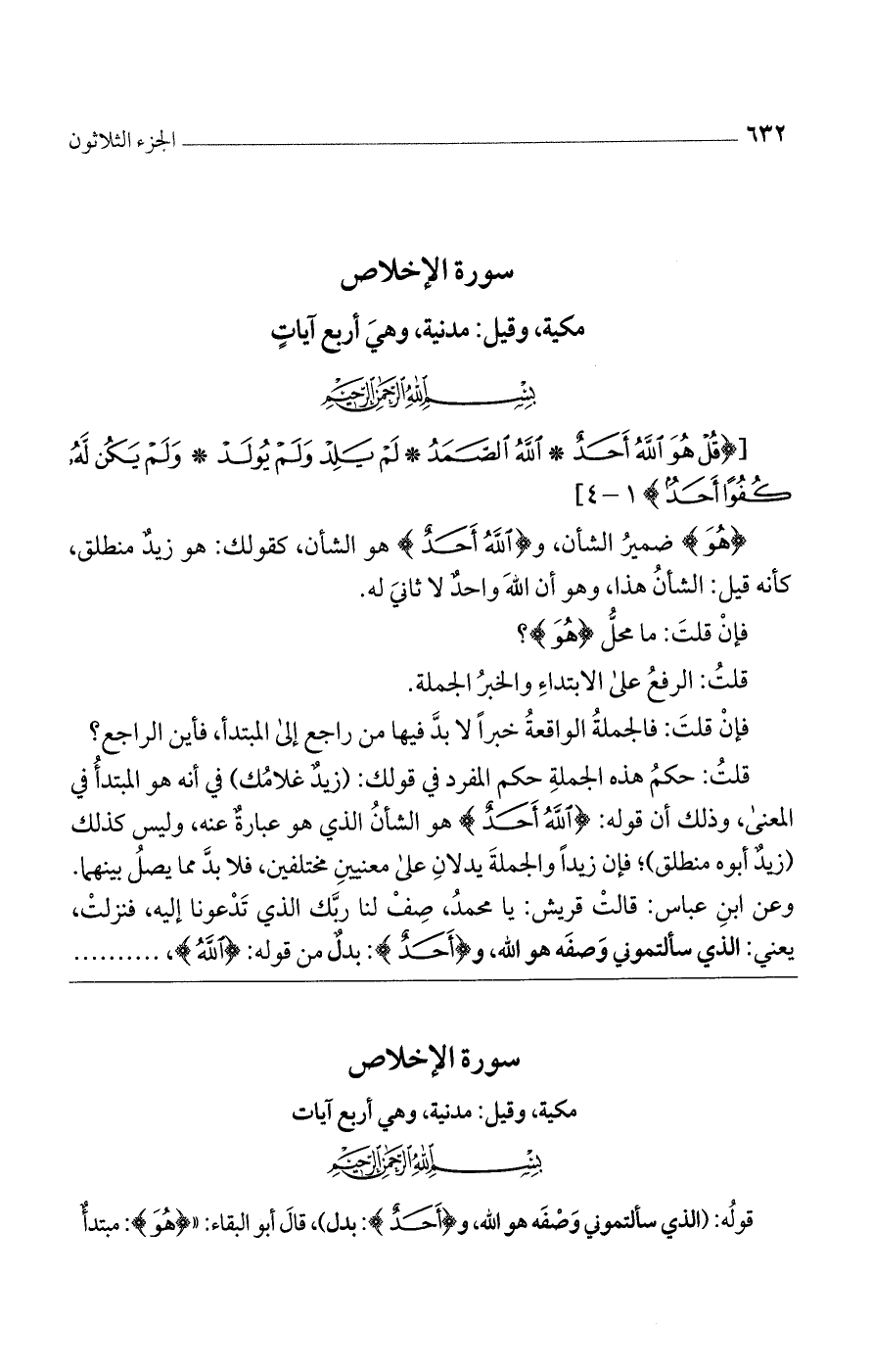 قولُه: (الذي سألتموني وَصْفَه هو الله، و {أَحَدٌ} بدل)، قالَ أبو البقاء: «{هُوَ}: مبتدأُ