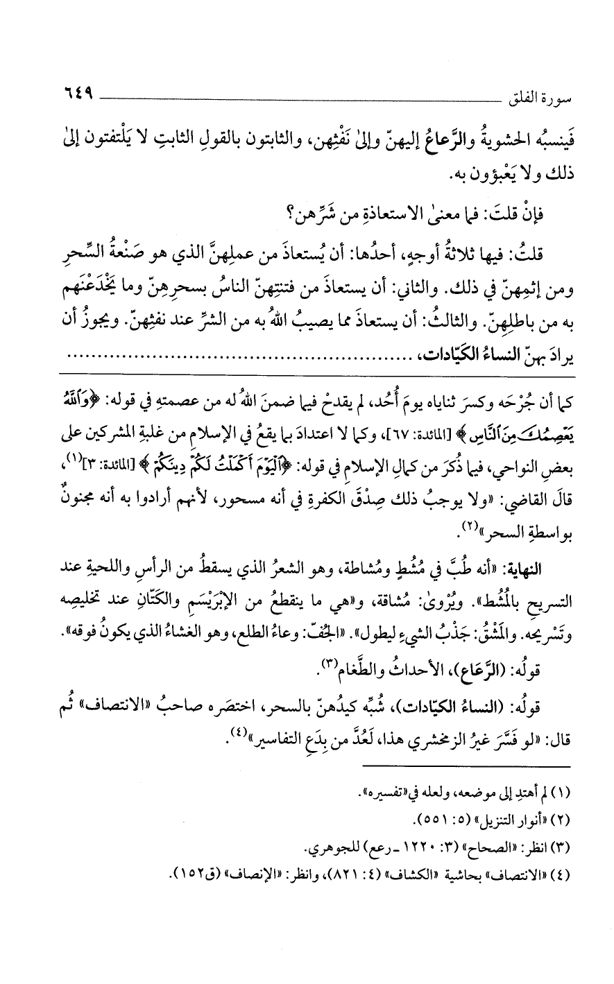 قولُه: (النساءُ الكيّادات)، شُبِّه كيدُهنّ بالسحر، اختصَره صاحبُ "الانتصاف" ثُم قال: «لو فَسَّرَ غيرُ الزمخشريّ هذا، لَعُدَّ من بِدَعِ التفاسير».