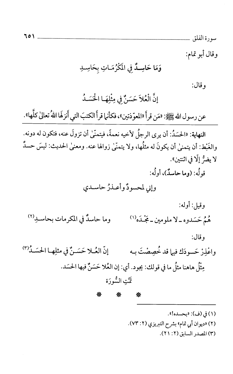 واعْذِرْ حَسودَك فيما قد خُصِصْتَ به ... إنّ العُلا حَسَنٌ في مثلِها الحسّدُ