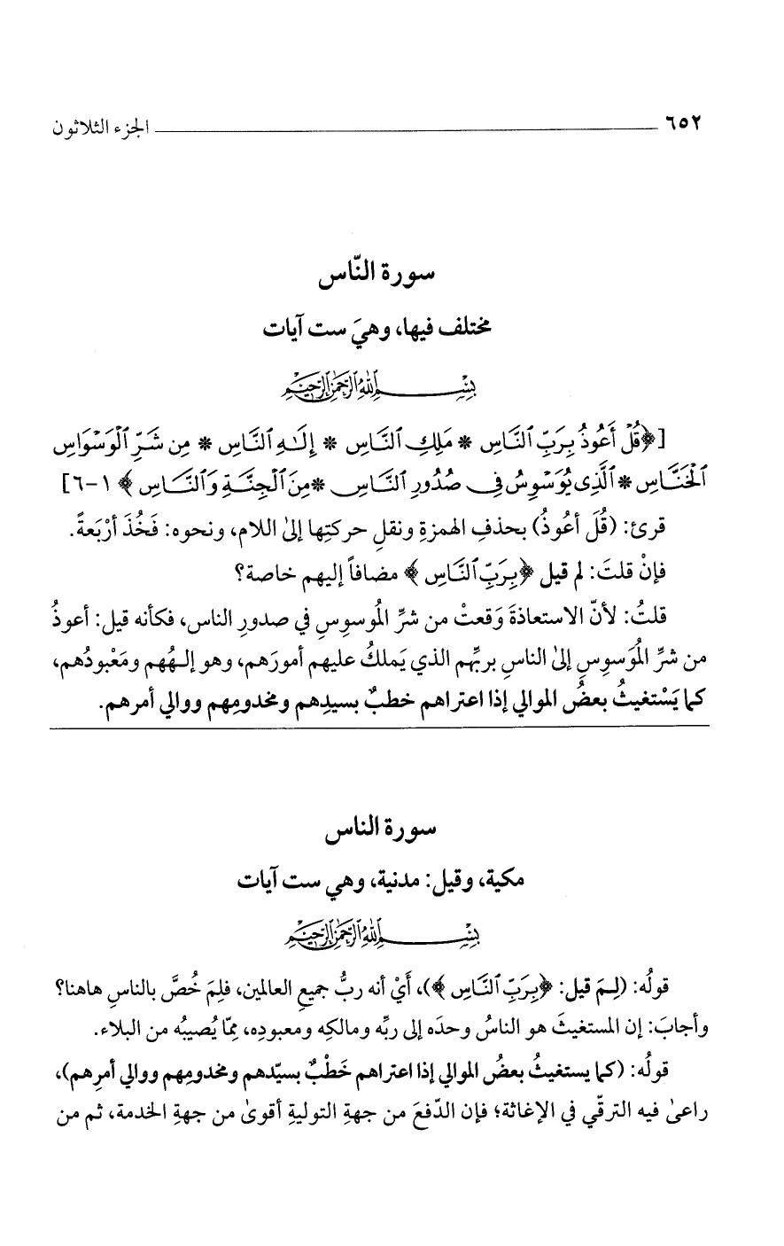 [(قُلْ أَعُوذُ بِرَبِّ النَّاسِ (1) مَلِكِ النَّاسِ (2) إِلهِ النَّاسِ (3) مِنْ شَرِّ الْوَسْواسِ الْخَنَّاسِ (4) الَّذِي يُوَسْوِسُ فِي صُدُورِ النَّاسِ (5) مِنَ الْجِنَّةِ وَالنَّاسِ)] 1 - 6 [