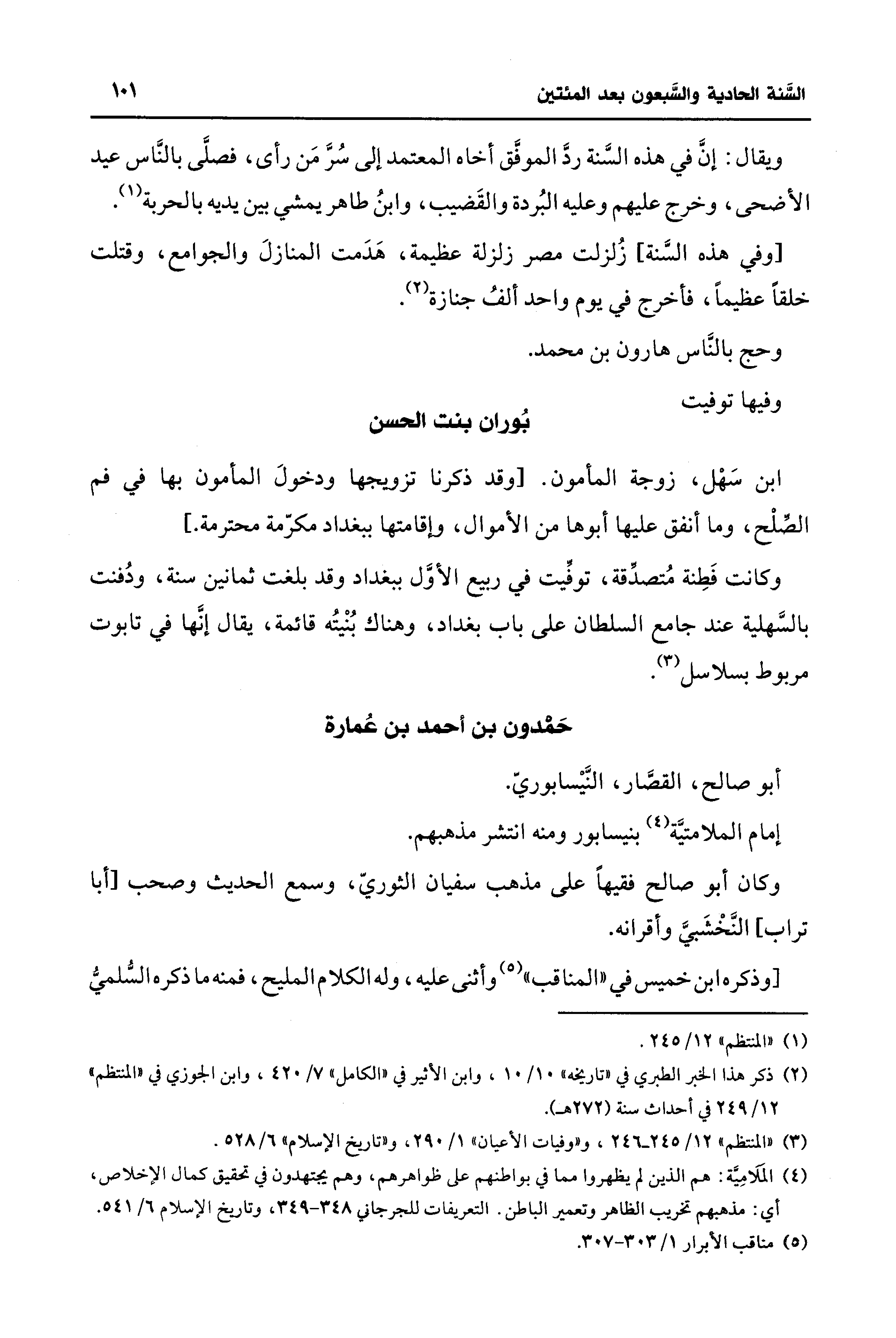 (¬2) ذكر هذا الخبر الطبري في "تاريخه" 10/ 10، وابن الأثير في "الكامل" 7/ 420، وابن الجوزي في "المنتظم" 12/ 249 في أحداث سنة (272 هـ).