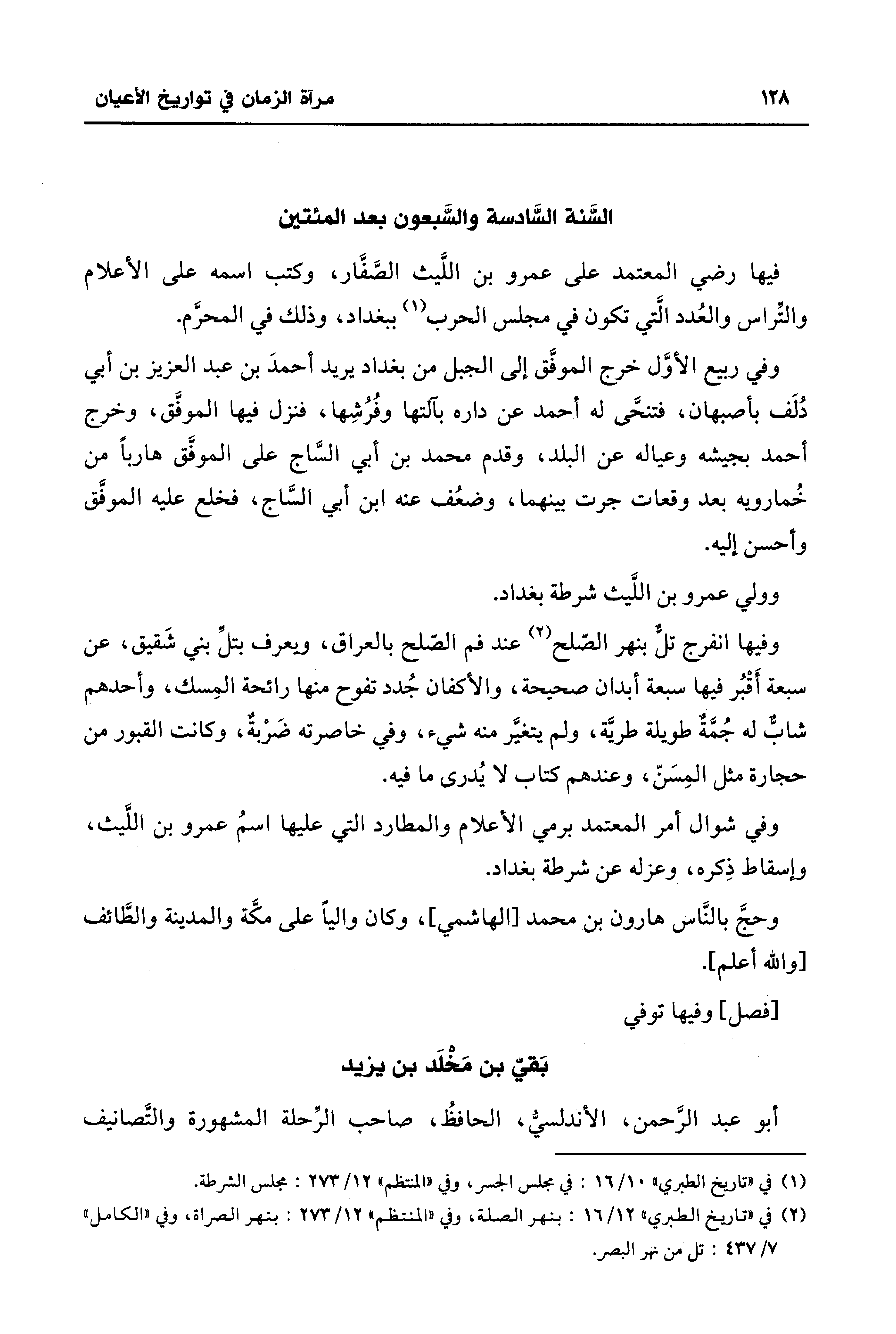 (¬2) في "تاريخ الطبري" 12/ 16: بنهر الصلة، وفي "المنتظم" 12/ 273: بنهر الصراة، وفي "الكامل" 7/ 437: تل من نهر البصر.