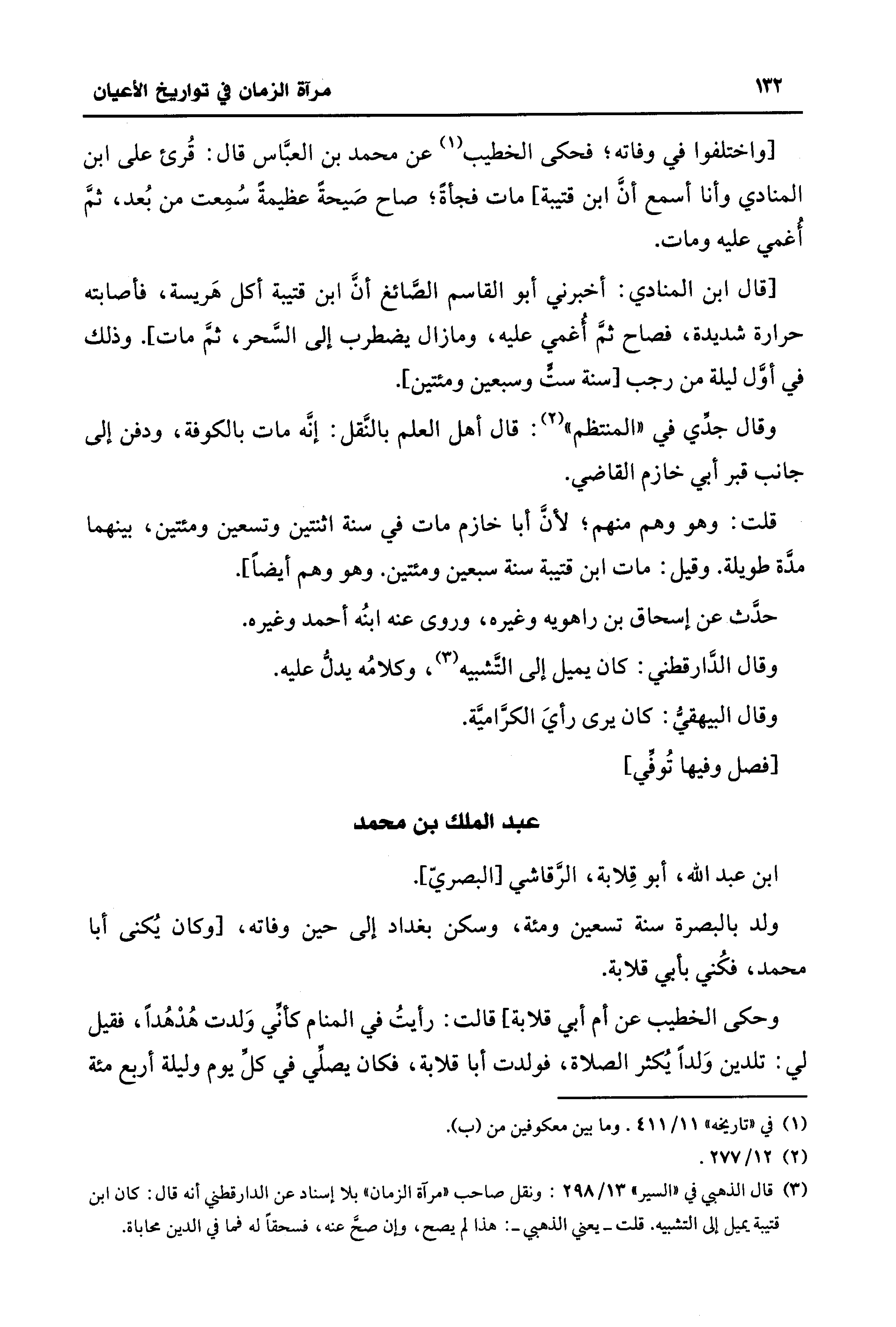 (¬3) قال الذهبي في "السير" 13/ 298: ونقل صاحب "مرآة الزمان" بلا إسناد عن الدارقطني أنه قال: كان ابن قتيبة يميل إلى التشبيه. قلت -يعني الذهبي-: هذا لم يصح، وإن صحَّ عنه، فسحقًا له فما في الدين محاباة.