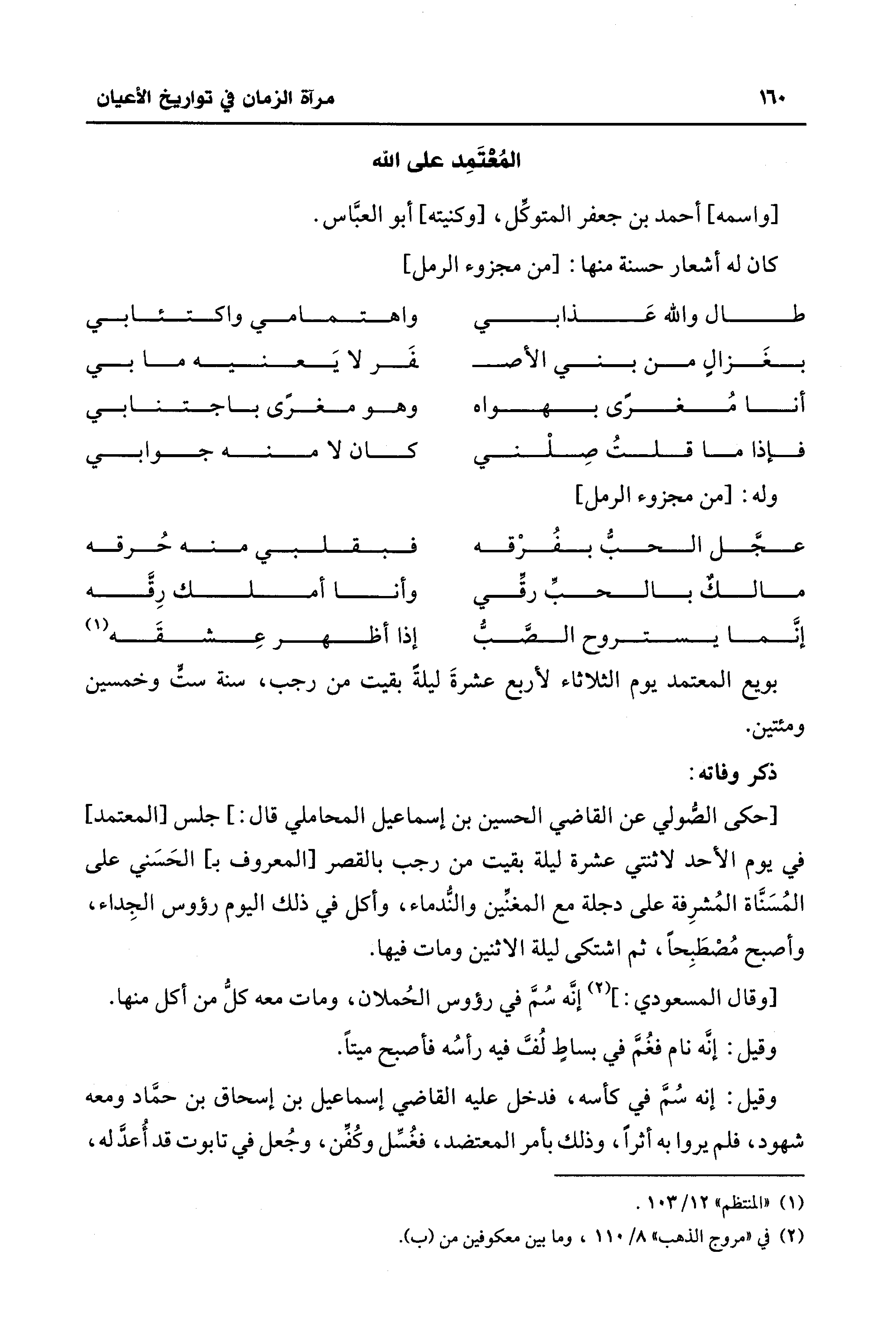 بويع المعتمد يوم الثلاثاء لأربع عشرةَ ليلةً بقيت من رجب، سنة ست وخمسين ومئتين.