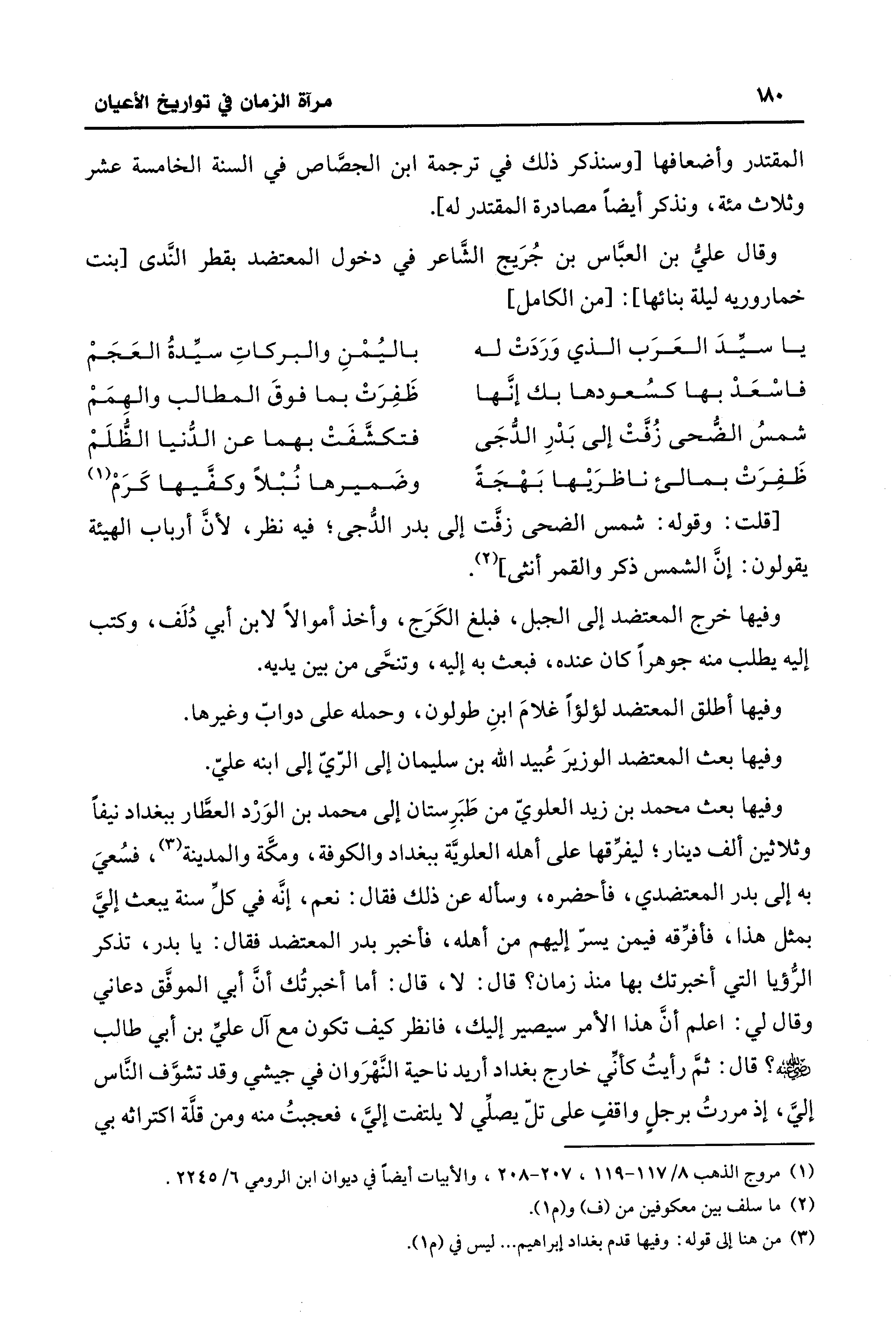 (¬1) مروج الذهب 8/ 117 - 119، 207 - 208، والأبيات أيضًا في ديوان ابن الرومي 6/ 2245.