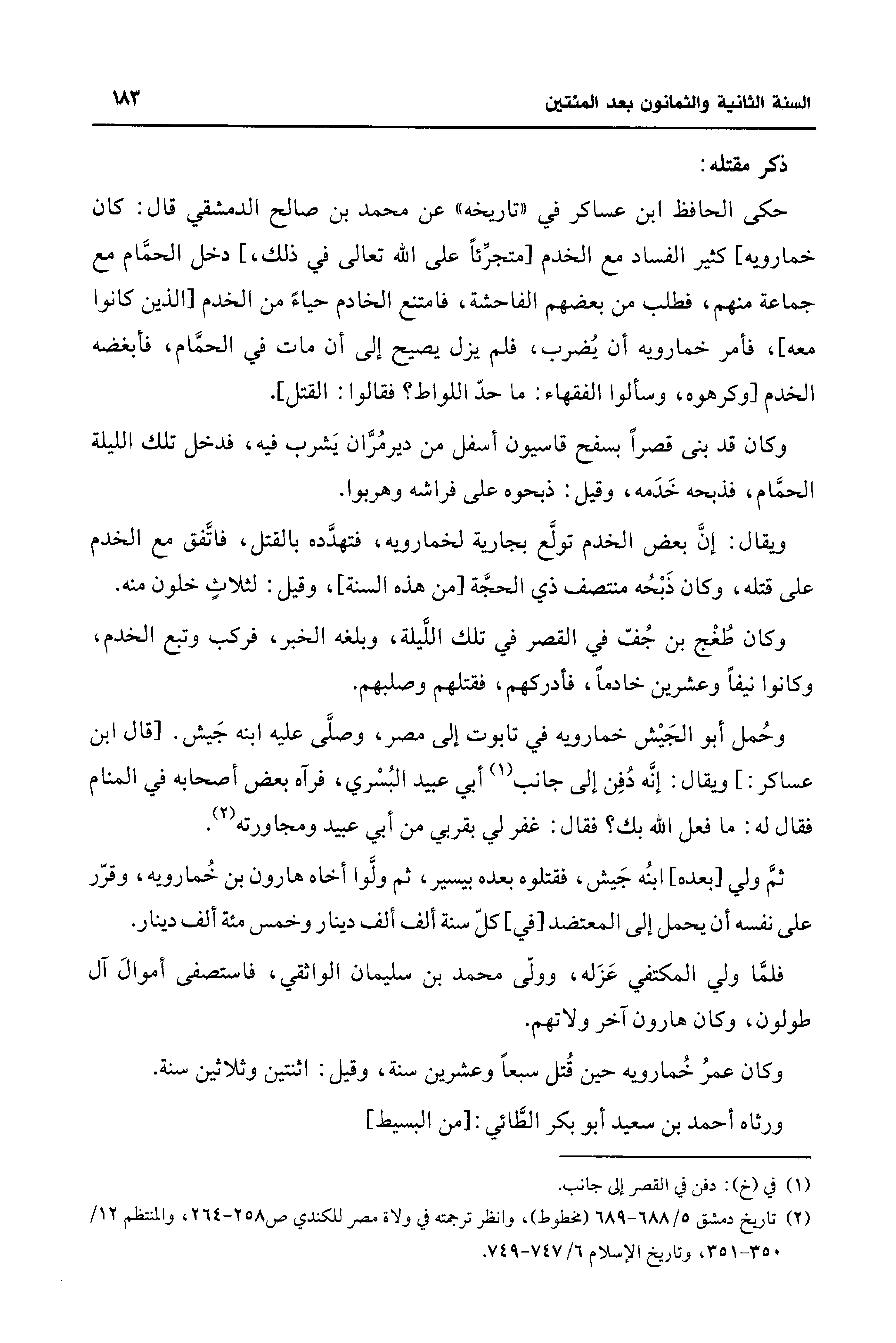 (¬2) تاريخ دمشق 5/ 688 - 689 (مخطوط)، وانظر ترجمته في ولاة مصر للكندي ص 258 - 264، والمنتظم 12/ 350 - 351، وتاريخ الإسلام 6/ 747 - 749.