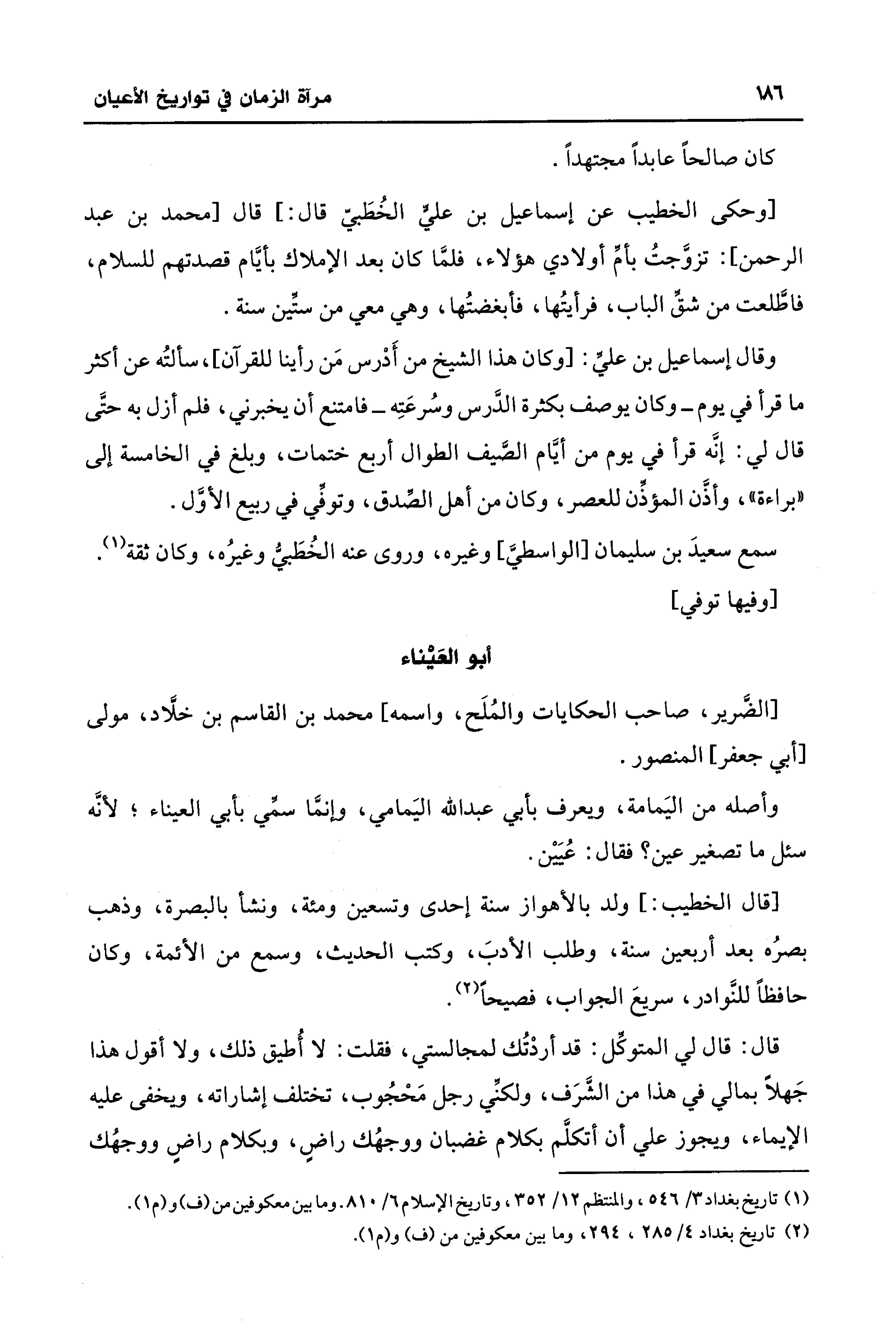 (¬1) تاريخ بغداد 3/ 546، والمنتظم 12/ 352، وتاريخ الإسلام 6/ 810. وما بين معكوفين من (ف) و (م 1).