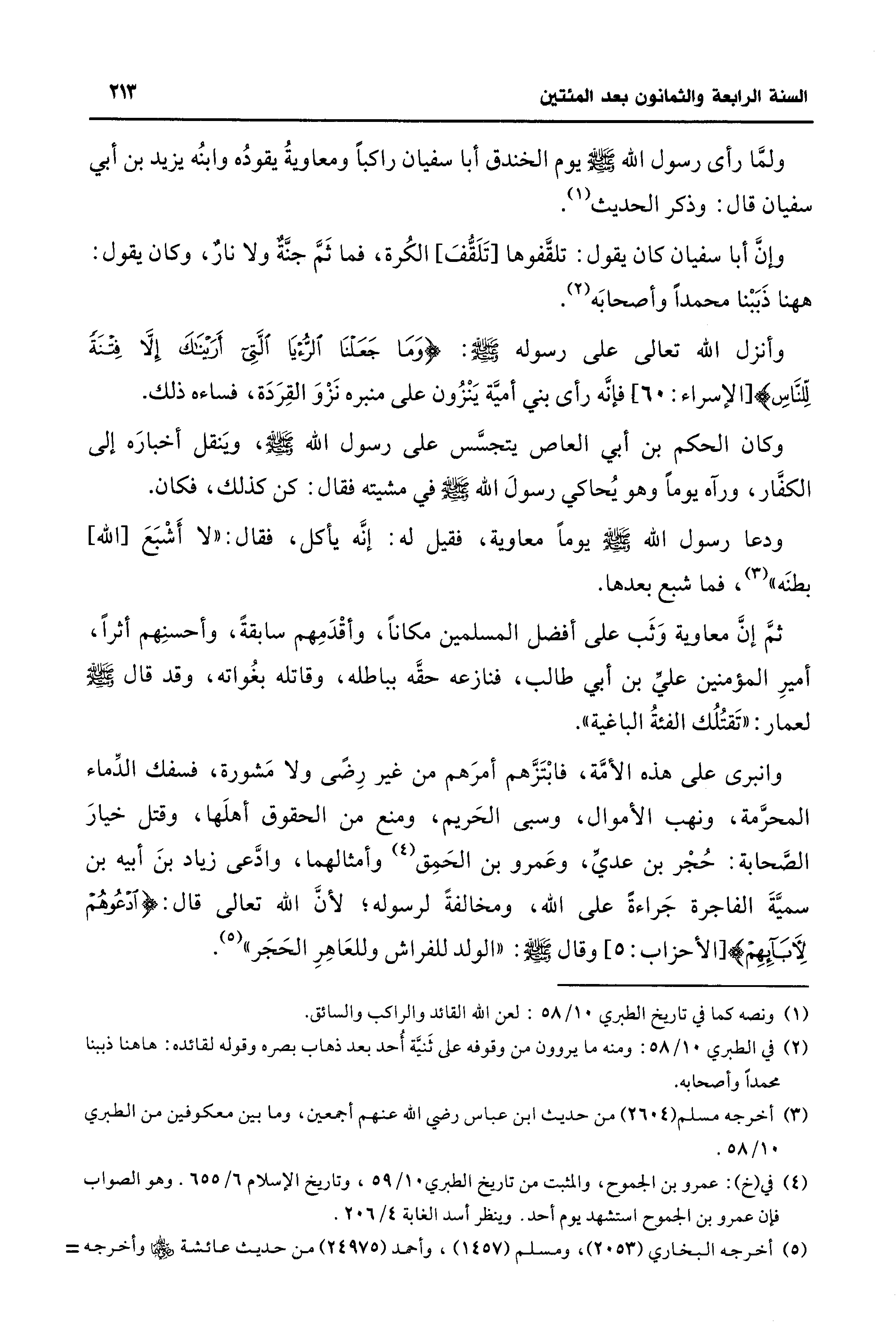 (¬2) في الطبري 10/ 58: ومنه ما يروون من وقوفه على ثَنيَّة أُحد بعد ذهاب بصره وقوله لقائده: هاهنا ذببنا محمدًا وأصحابه.