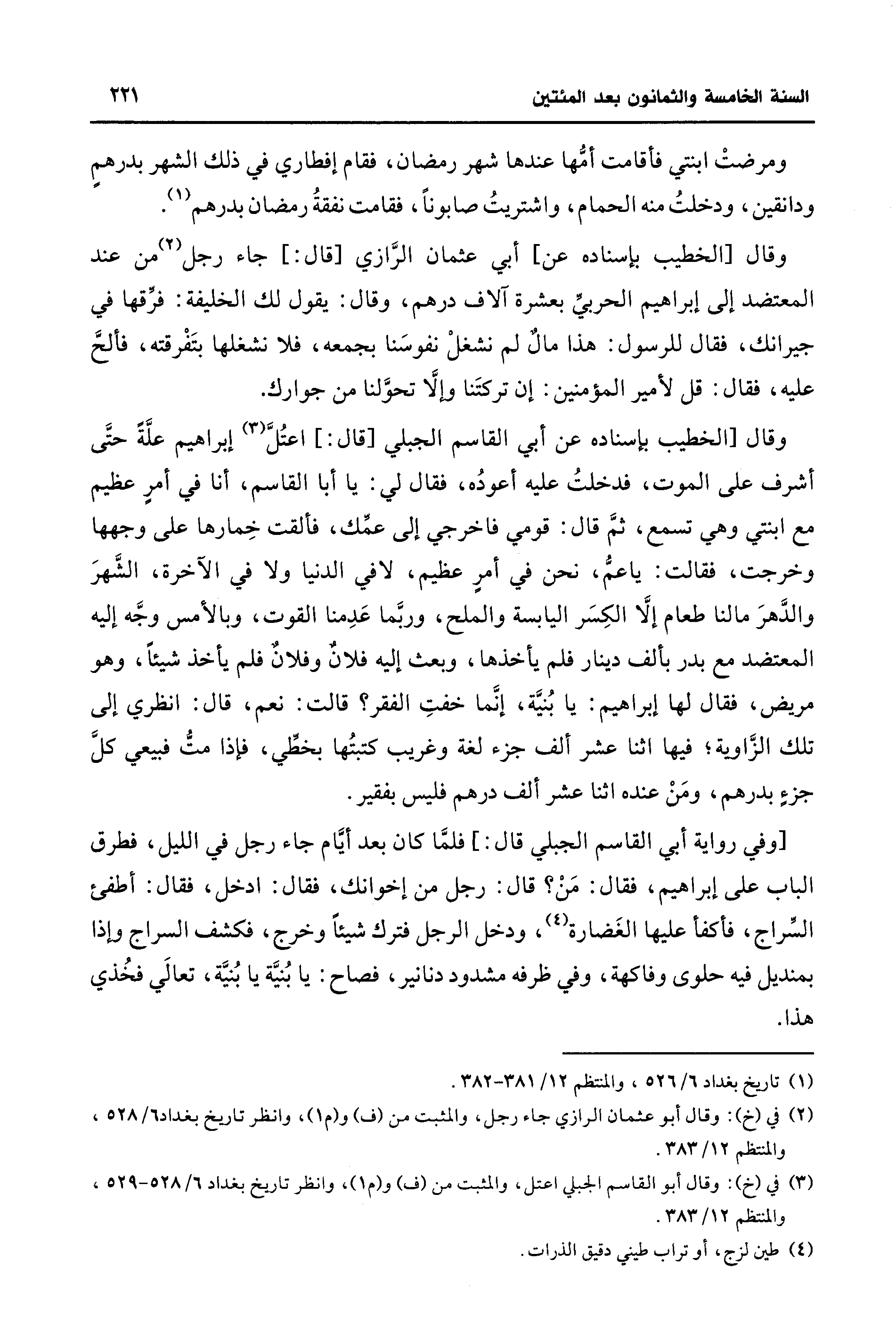 (¬1) تاريخ بغداد 6/ 526، والمنتظم 12/ 381 - 382.