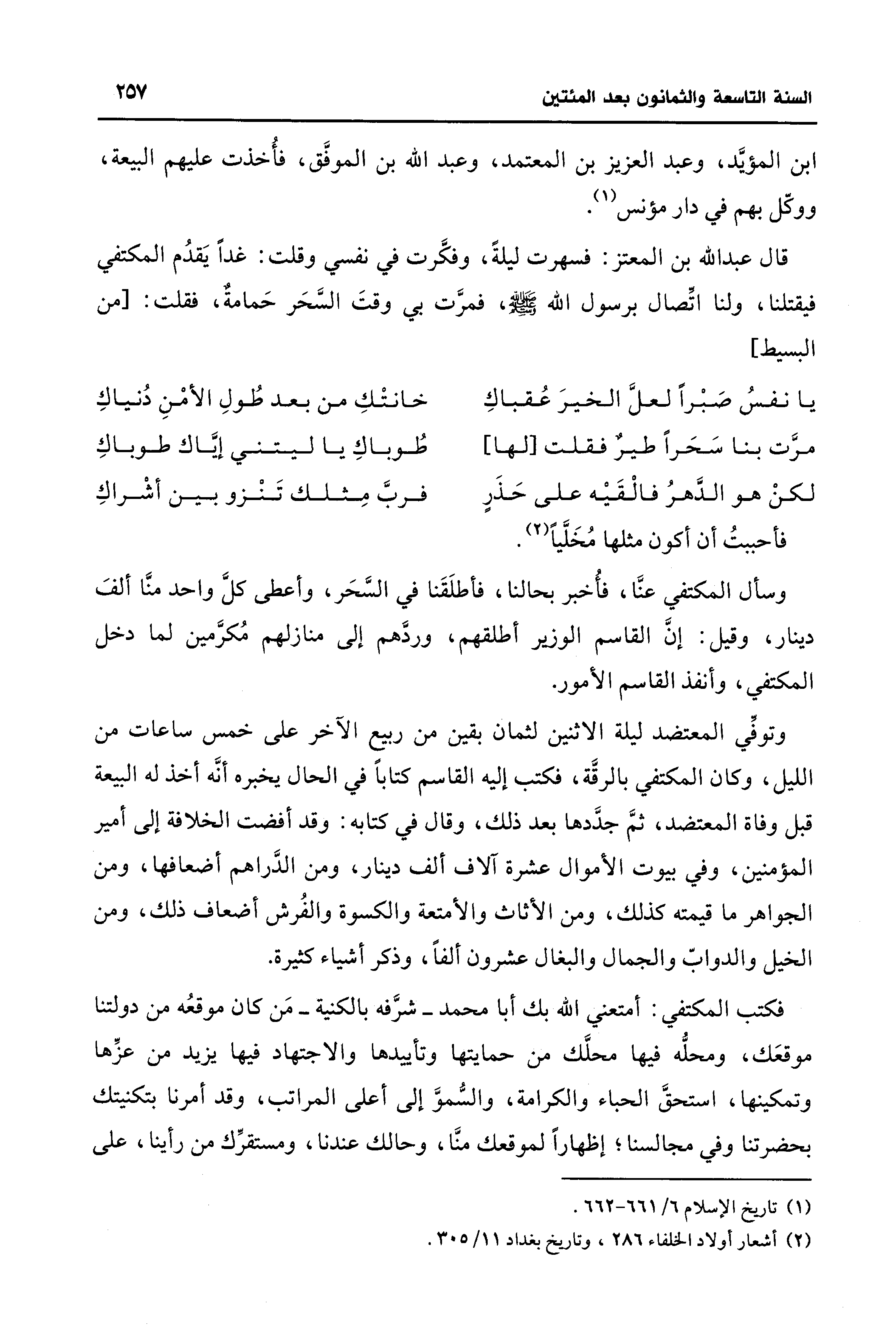 (¬2) أشعار أولاد الخلفاء 286، وتاريخ بغداد 11/ 305.