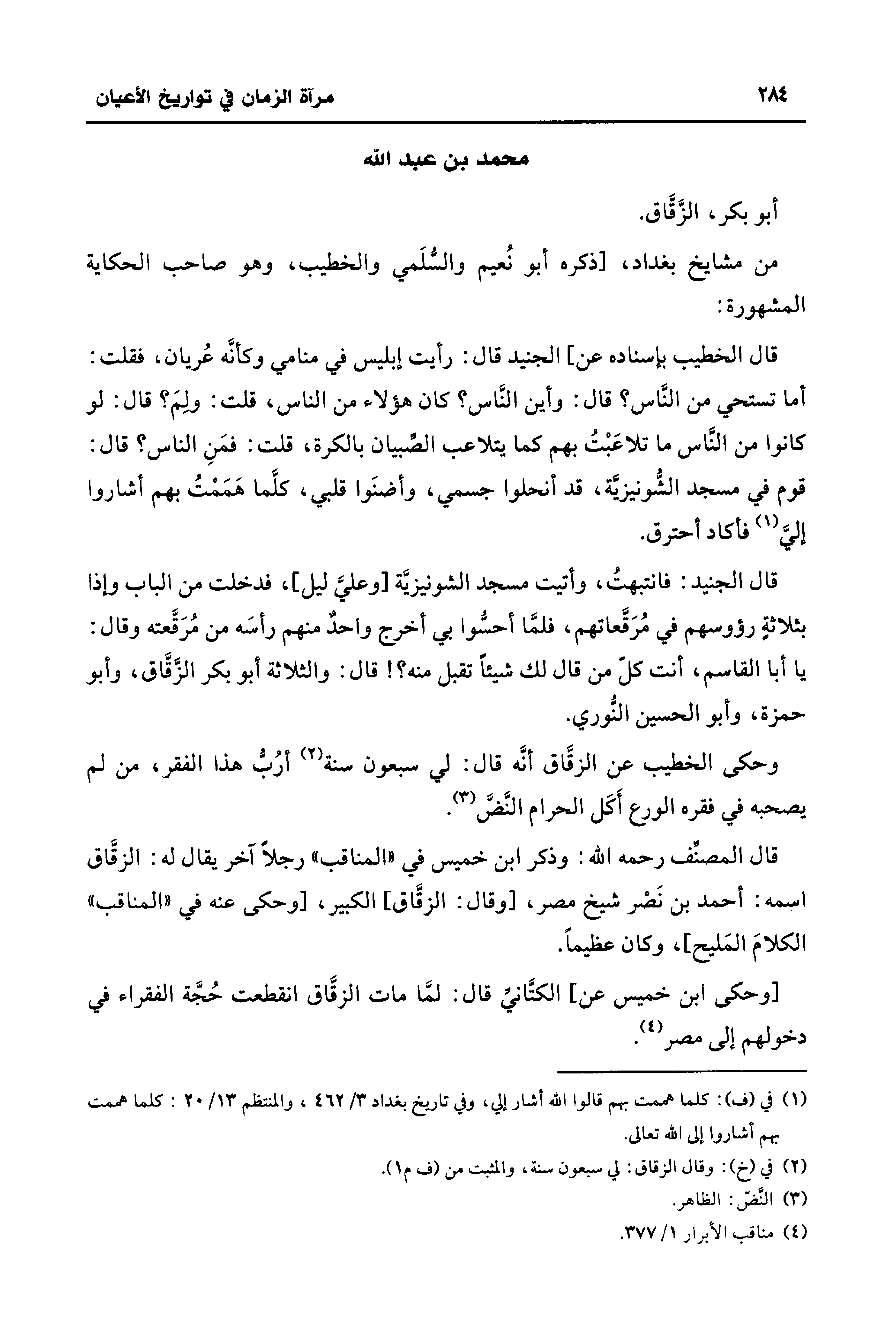 قال المصنِّف رحمه الله: وذكر ابن خميس في "المناقب" رجلًا آخر يقال له: الزقَّاق اسمه: أَحْمد بن نَصْر شيخ مصر، [وقال: الزقاق] الكبير، [وحكى عنه في "المناقب" الكلامَ المَليح]، وكان عظيمًا.
